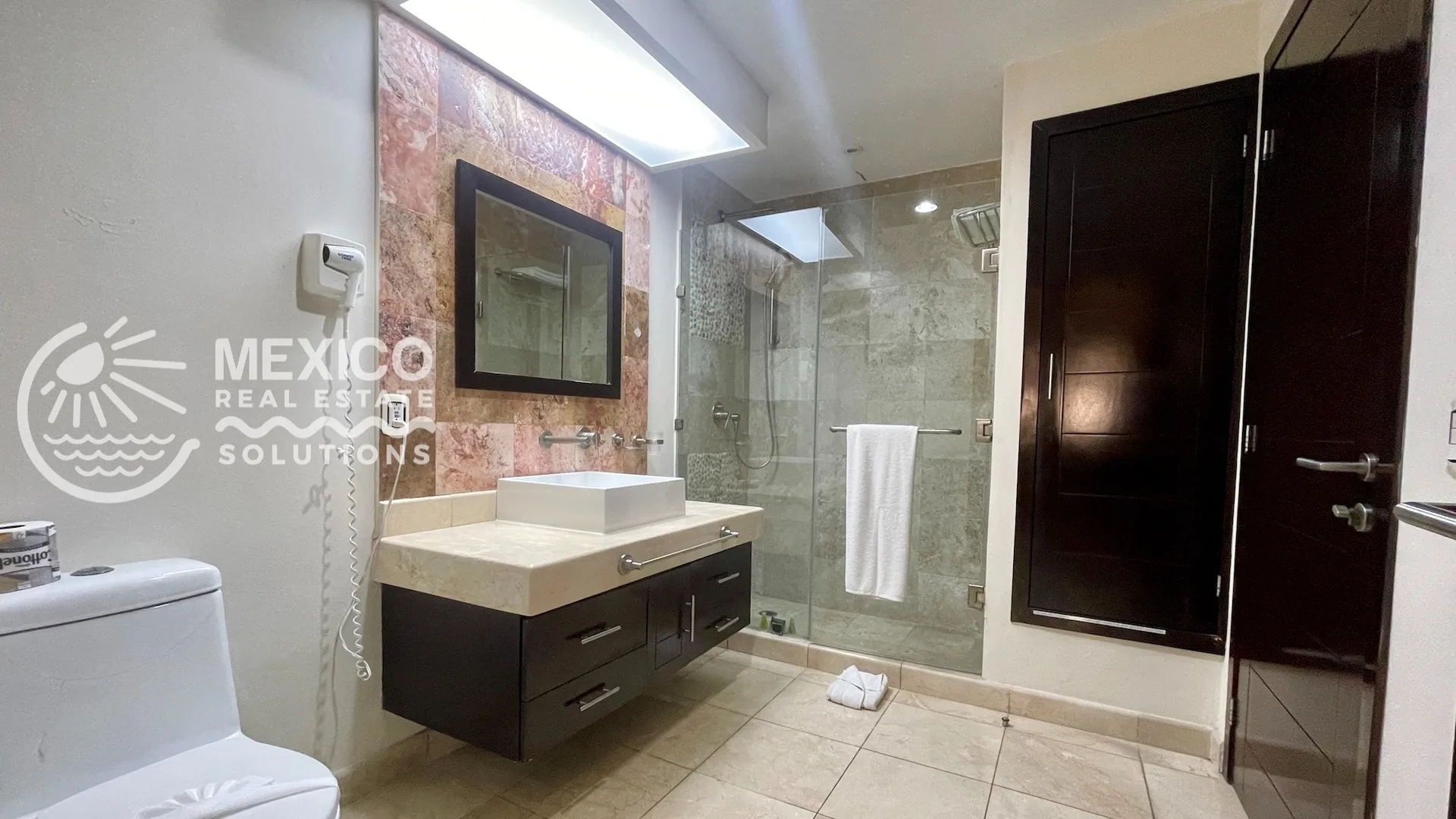 This fully furnished 2-bedroom, 2-bathroom condo is situated on the third floor of a beachfront building in Playa del Carmen. It is an end unit that provides bright interiors, consistent breezes, and a private terrace with pool and sea views. The property is steps from the white sand beach and Fifth Avenue.