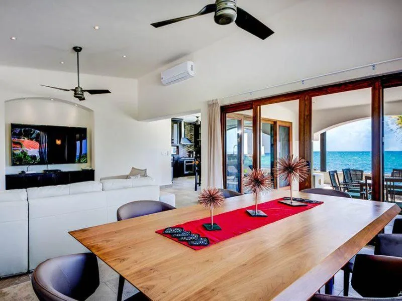 The private pool provides direct views of the beach and the Caribbean Sea. A private terrace is ideal for enjoying sunrises and the sound of the waves. The property includes direct access to the beach for swimming or sunbathing.