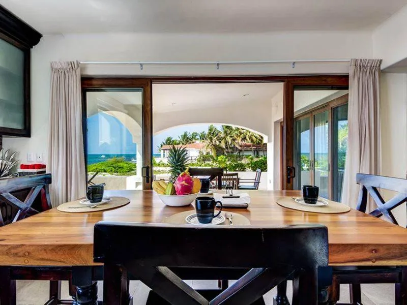 This single-level beachfront house offers true Caribbean luxury in Playacar Phase 1, a residential community known for its exclusivity and security. The spectacular property features 3 bedrooms, 2 full bathrooms, and a private pool overlooking the ocean, with 180-degree panoramic views of the Caribbean Sea from the kitchen, dining area, living room, terrace, and pool.