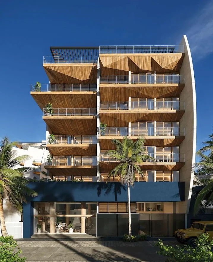 This luxurious apartment on the beach in Playa del Carmen features an avant-garde design, high-end finishes, and first-class amenities.