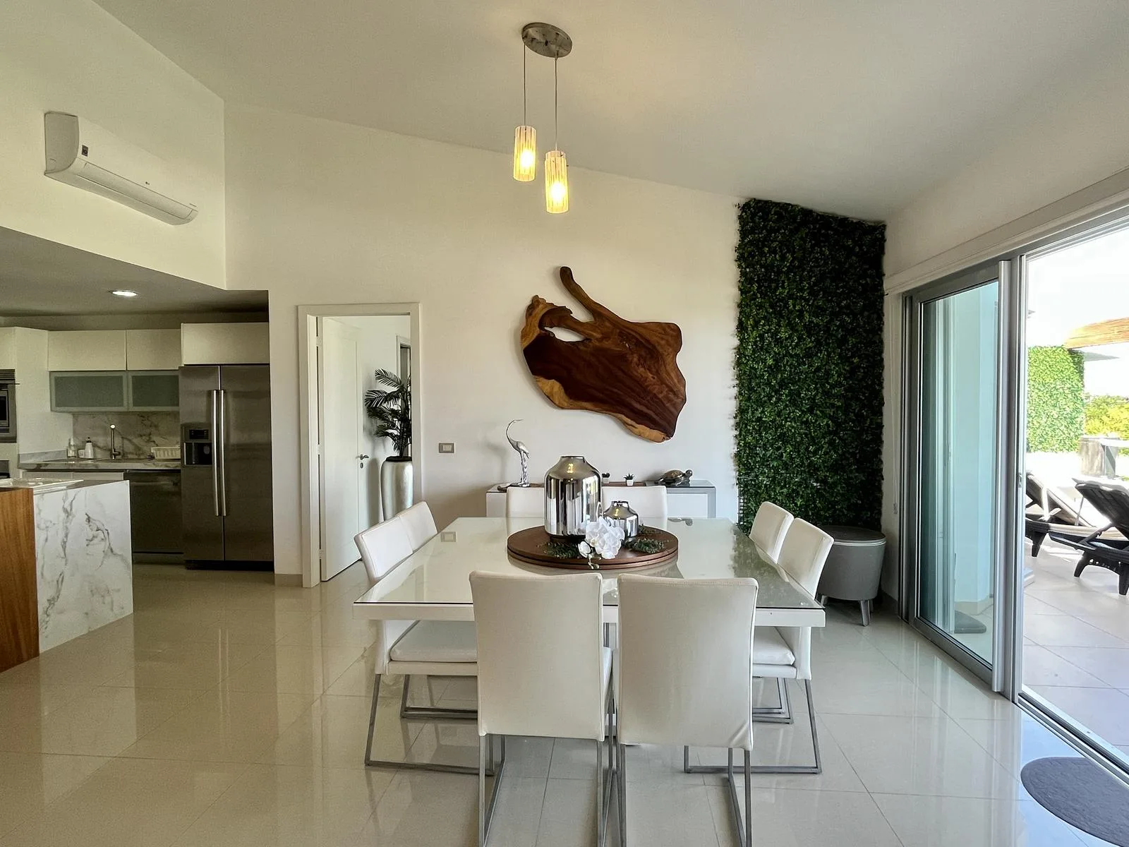 This elegant, fully furnished and equipped three-bedroom apartment offers generous space, an integrated kitchen, and a private terrace overlooking greenery.