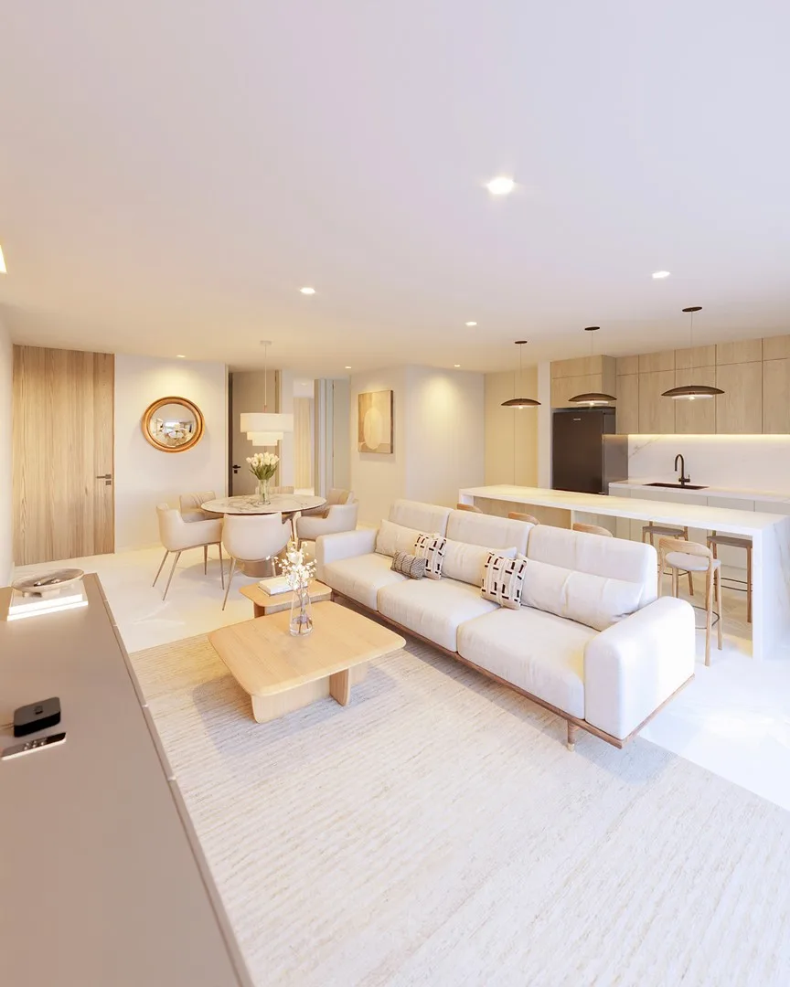 The development offers one and two-bedroom apartments, along with three-bedroom penthouses. These residences feature ocean and sunset views. Expansive terraces provide space to enjoy the climate and sea breeze.