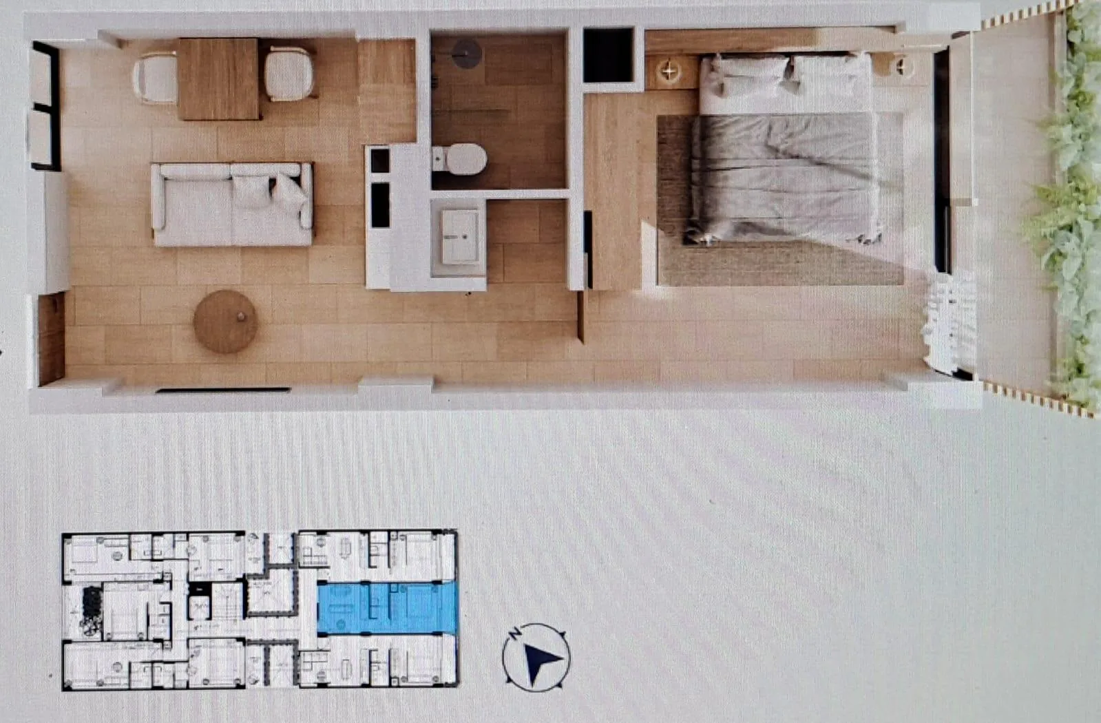 The building includes an infinity pool, a rooftop with sea views, a yoga area, a business center, a lounge and bar, a terrace with a grill, an outdoor dining area, a lobby, covered parking, an elevator, internal patios, and a gym.