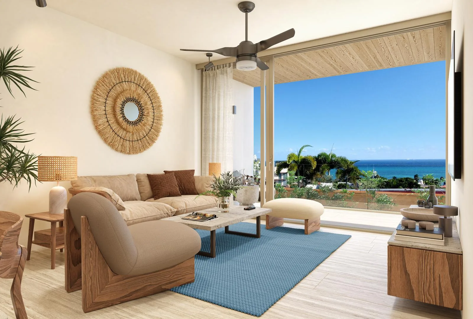 The apartments are situated in the heart of Playa del Carmen, steps from Quinta Avenida and the beach. This pedestrian-friendly location faces Plaza Corazón, ensuring permanent unobstructed views. The building comprises eight levels in total, with seven floors dedicated to apartments and a rooftop that features a large pool and a restaurant. The construction spans over 2, 500 square meters.