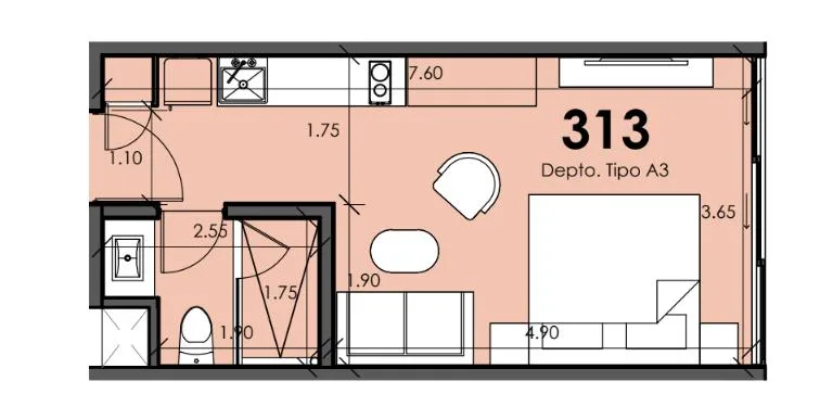 The apartment is a 28-square-meter studio with 1 bedroom and 1 bathroom. It is turnkey, fully furnished, equipped, and decorated. Professional management and hotel operation services are included.