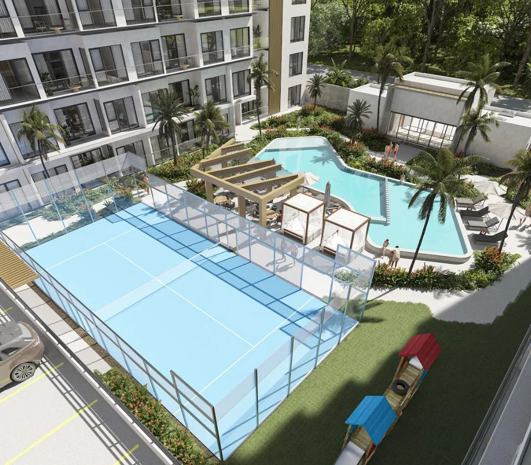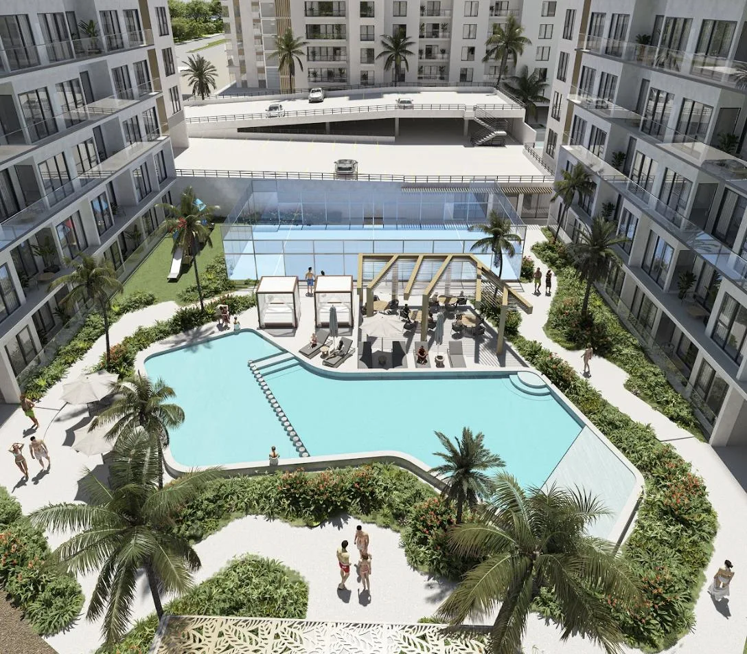 This is an 89-square-meter apartment with two bedrooms, located in a high-growth residential zone of Playa del Carmen.