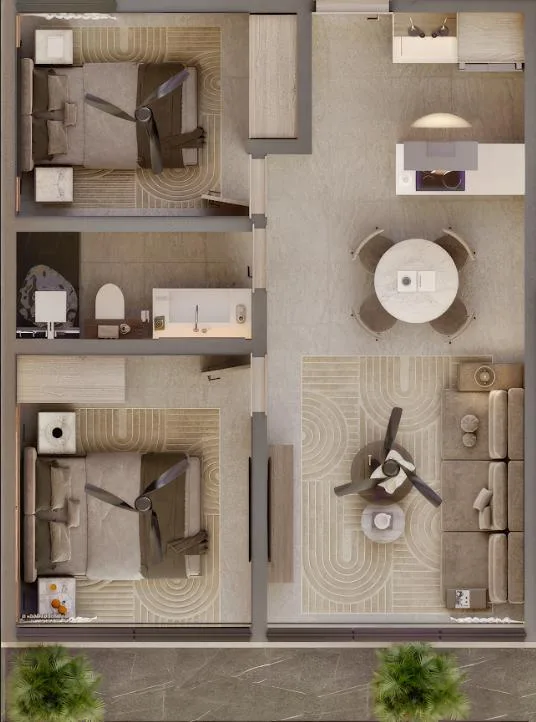 This property is a 55-square-meter residence with two bedrooms and a sea view, offering a lifestyle surrounded by nature and comfort.