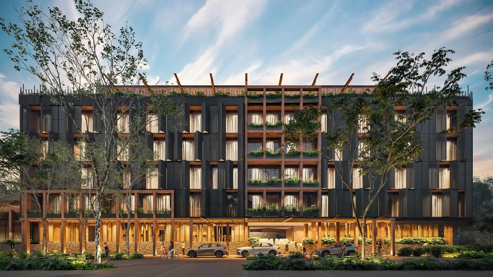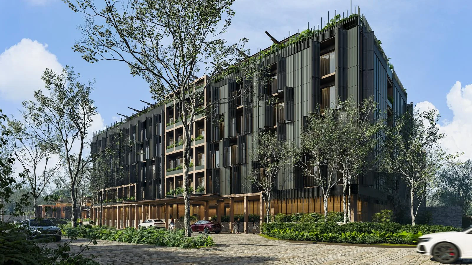 The development incorporates sustainable architecture and eco-efficient techniques, designed to harmonize with the natural environment and prioritize ecosystem conservation. It features unique amenities such as The Root, a farm-to-table restaurant.