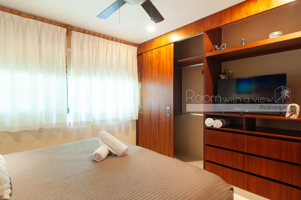 This modern 3-bedroom, 3-bathroom condo is located on Calle 38, just steps from Playa del Carmen's iconic 5th Avenue and the sparkling waters of Coco Beach. Calle 38 is a charming, tree-lined street known for its relaxed atmosphere and direct connection between Fifth Avenue and the beach. The area is surrounded by restaurants, cafes, boutique hotels, and residential developments.