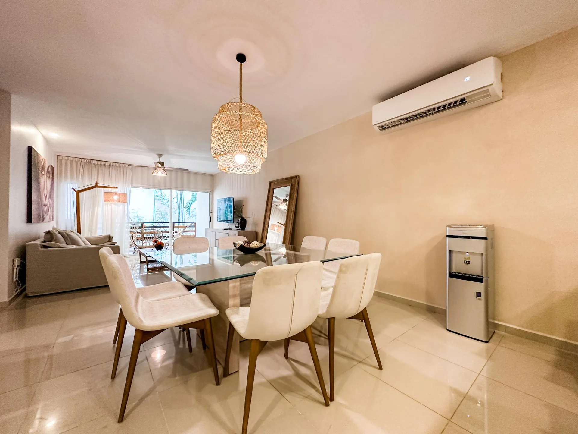 This spectacular ground-floor condominium in Playa del Carmen is fully renovated and features a large private terrace. It offers a sophisticated design and a direct connection to the surrounding tropical nature.