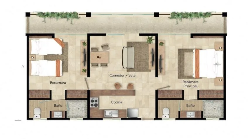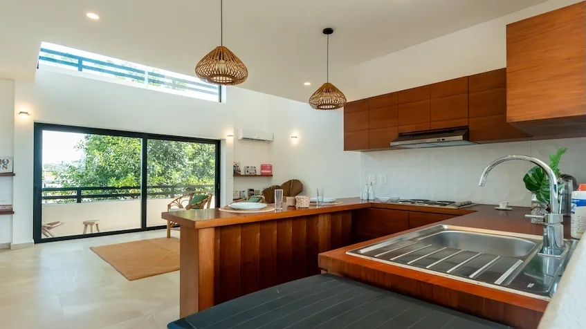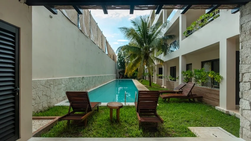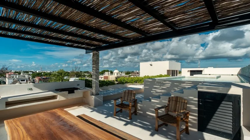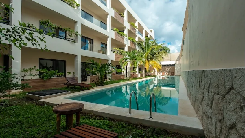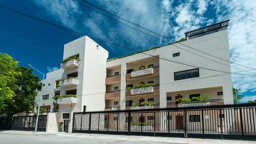This residential building is located just steps from the New Fifth Avenue in Playa del Carmen. Its contemporary design blends coastal tranquility with the vibrant city lifestyle. The building offers Studio, Double, and Loft units, featuring extended terraces, a swimming pool, gardens, a rooftop, pergolas, sundecks, BBQ areas, parking, a laundry room, an elevator, and controlled access.
