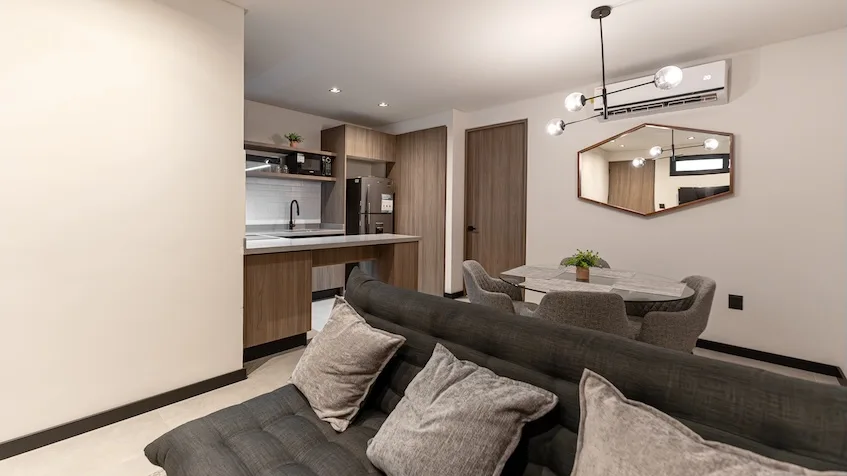 This residential development is located in the Downtown area of Playa del Carmen, approximately two minutes from the Caribbean Sea. The project offers studio and two-bedroom condominiums with modern designs and functional layouts.