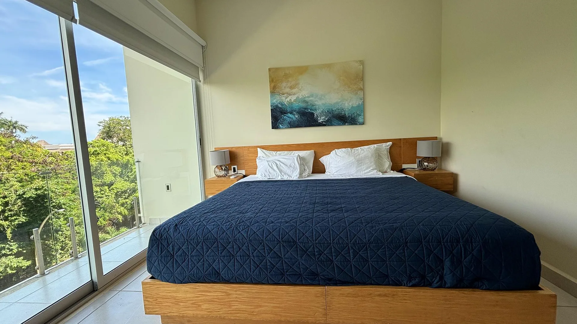 The apartment is fully furnished and features a lock-off concept that allows the two suites to be rented separately. It boasts a modern design with abundant natural light through large windows. The unit is minutes from Xcalacoco beach and Quinta Avenida.