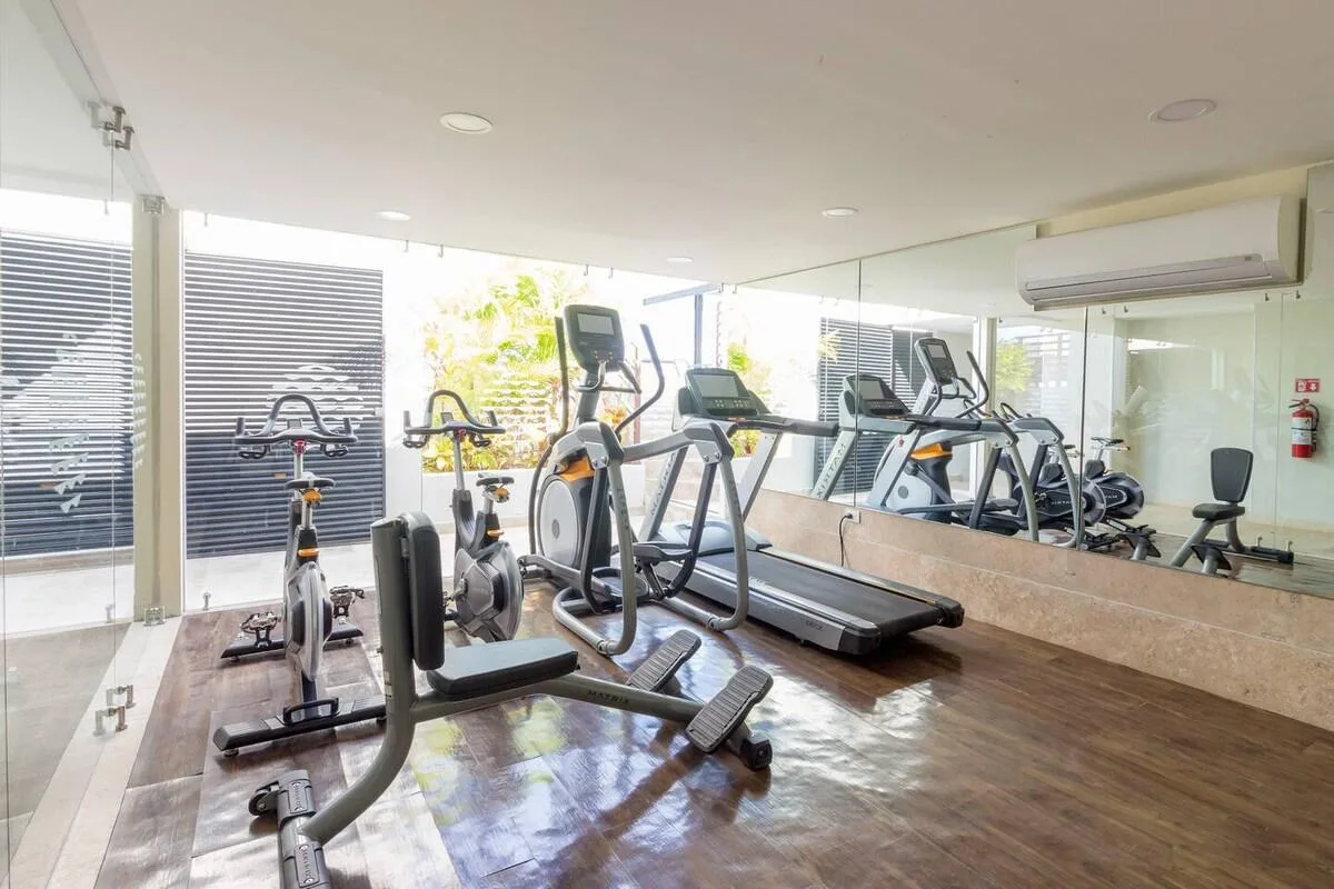 Experience the best of Playa del Carmen in this elegant and fully furnished one-bedroom unit, ideal as a home or an investment. The property contains a living area, a kitchen equipped with an oven, a laundry area, a balcony overlooking the building's interior gardens, a bedroom with a closet, and a fully appointed bathroom.