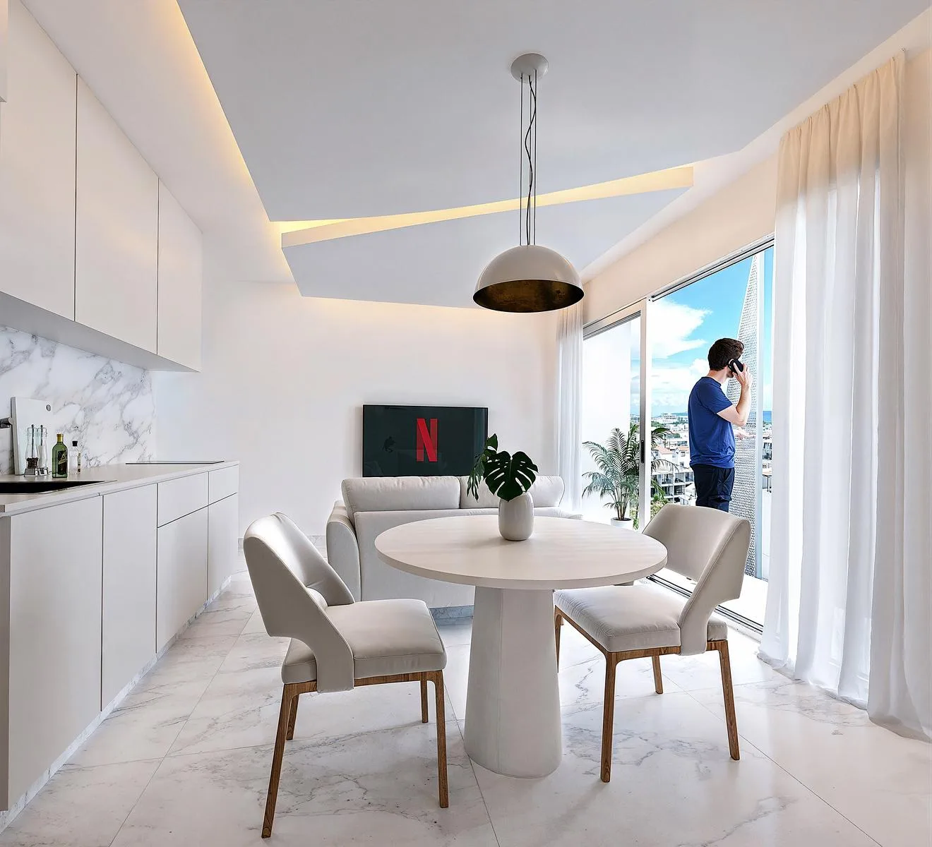 It boasts an efficient and functional layout with an equipped kitchen. The finishes include porcelanic floors, tropical wood carpentry, ambient lighting, and high-quality windows and doors.