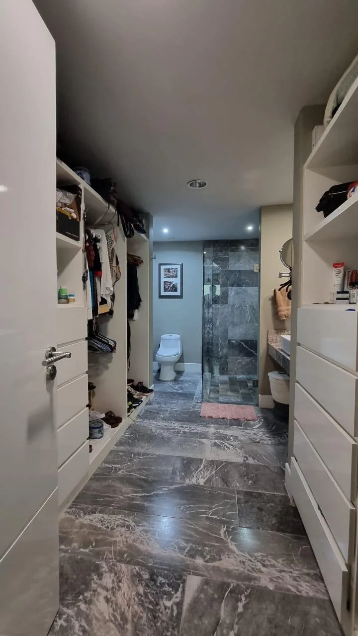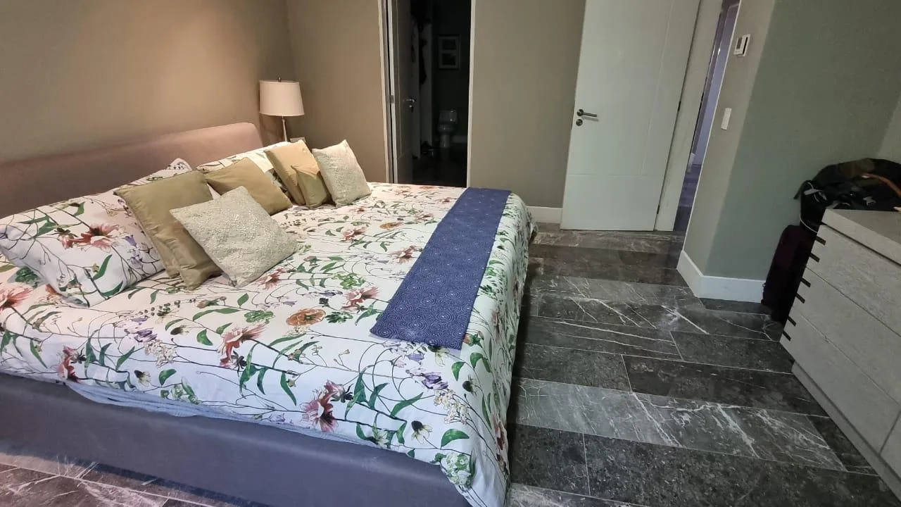 The main bedroom suite includes a walk-in closet and a full bathroom. The two additional bedrooms each have their own private bathroom. Interior finishes consist of porcelain tile floors, air conditioning, and built-in closet carpentry. The condominium is in excellent condition.