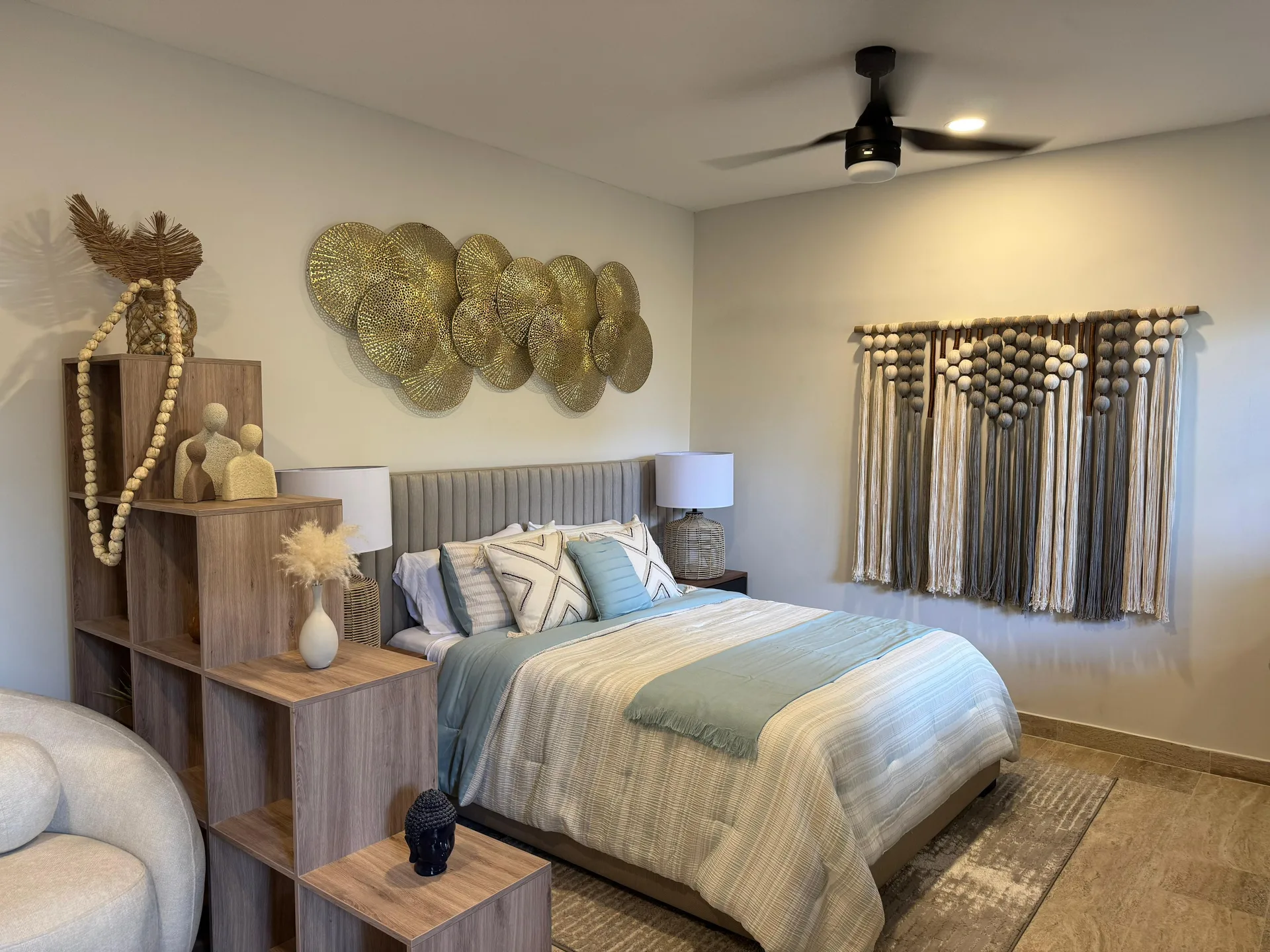 The residence features a central park that connects with nature and promotes tranquility. A dedicated yoga garden within the community is filled with tropical plants and relaxation spaces, ideal for reconnecting with nature and finding peace. A central fountain adds a sense of serenity and freshness, with a design inspired by the movement and gentle sound of water.