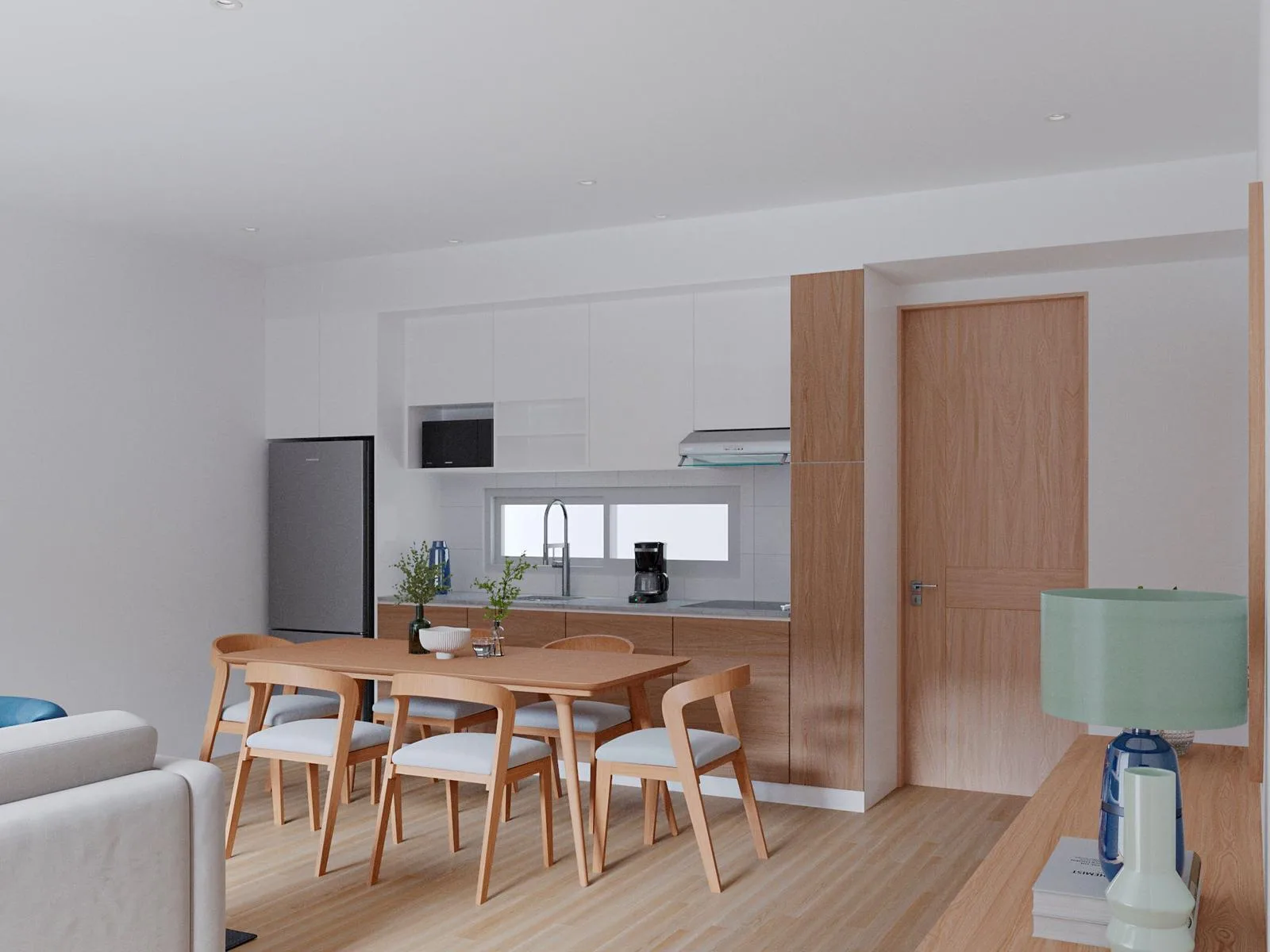 The residence provides secure access with a reception desk, digital locks, and security cameras. It also includes a dedicated barbecue area and parking.