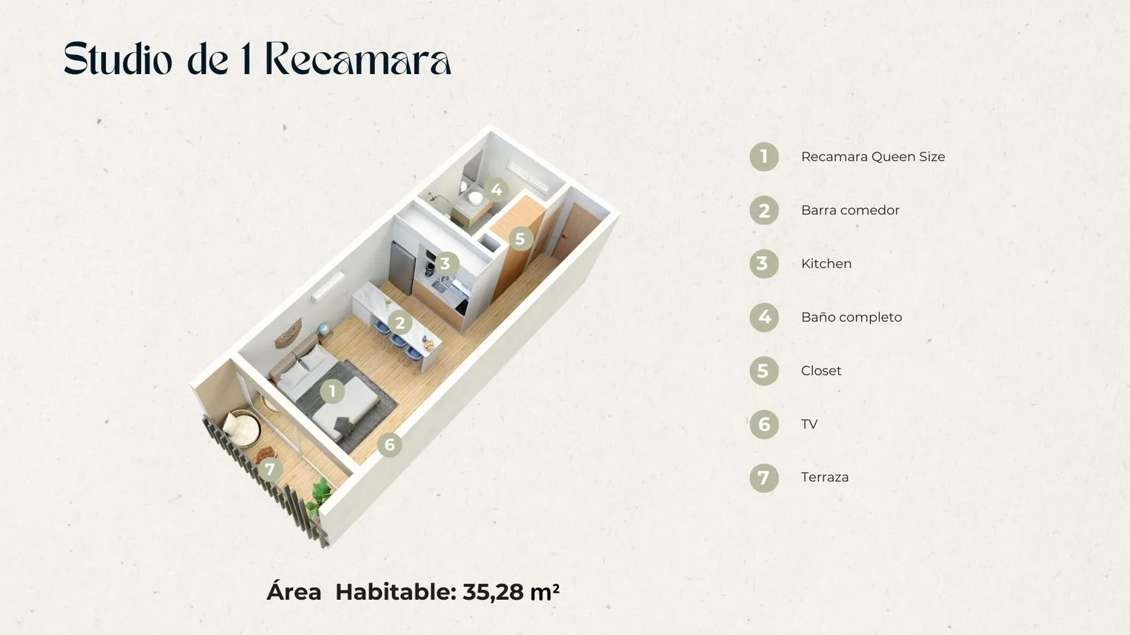 This property captures the essence of Playa del Carmen, blending comfort with the local environment. It enjoys a prime location just a few blocks from the famous Fifth Avenue, known for its cosmopolitan atmosphere, white sand beaches, shopping, gastronomy, and cultural attractions.