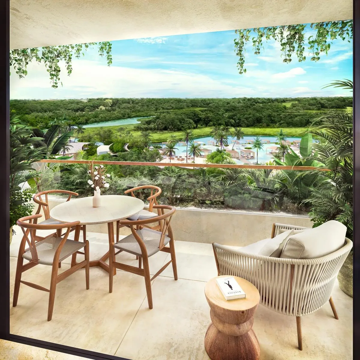 Designed by Artigas Arquitectos, this unit combines elegance, nature, and modernity in a unique setting. It features premium finishes, spacious interiors, an equipped kitchen, and terraces with views of the golf course, lagoons, or jungle.