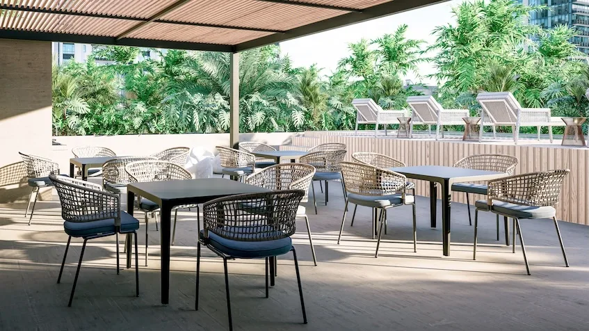 The development is strategically located at the corner of Avenida Constituyentes and Calle 80 Norte in Playa del Carmen, Quintana Roo. This location ensures excellent connectivity and is close to key services and points of interest. The beach is approximately five minutes away by bicycle. Supermarkets, schools, hospitals, 5th Avenue, and downtown Playa del Carmen are all within an eight-minute travel radius.
