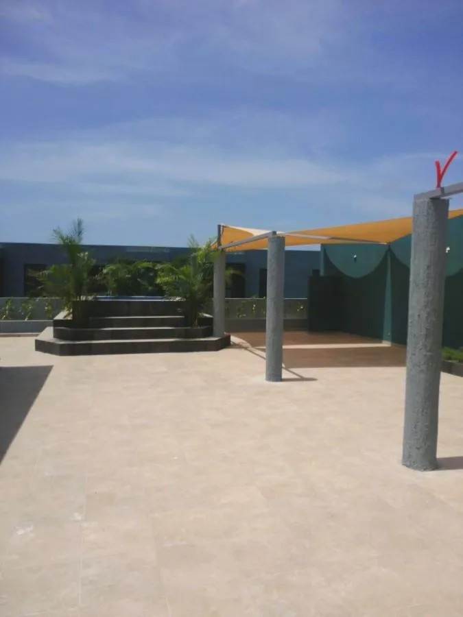 The condominium complex offers a range of amenities for residents. These include a rooftop area with two jacuzzis, an outdoor BBQ and kitchen area, a shared swimming pool, a children's playroom, a small outdoor gym, and a shared laundry room.