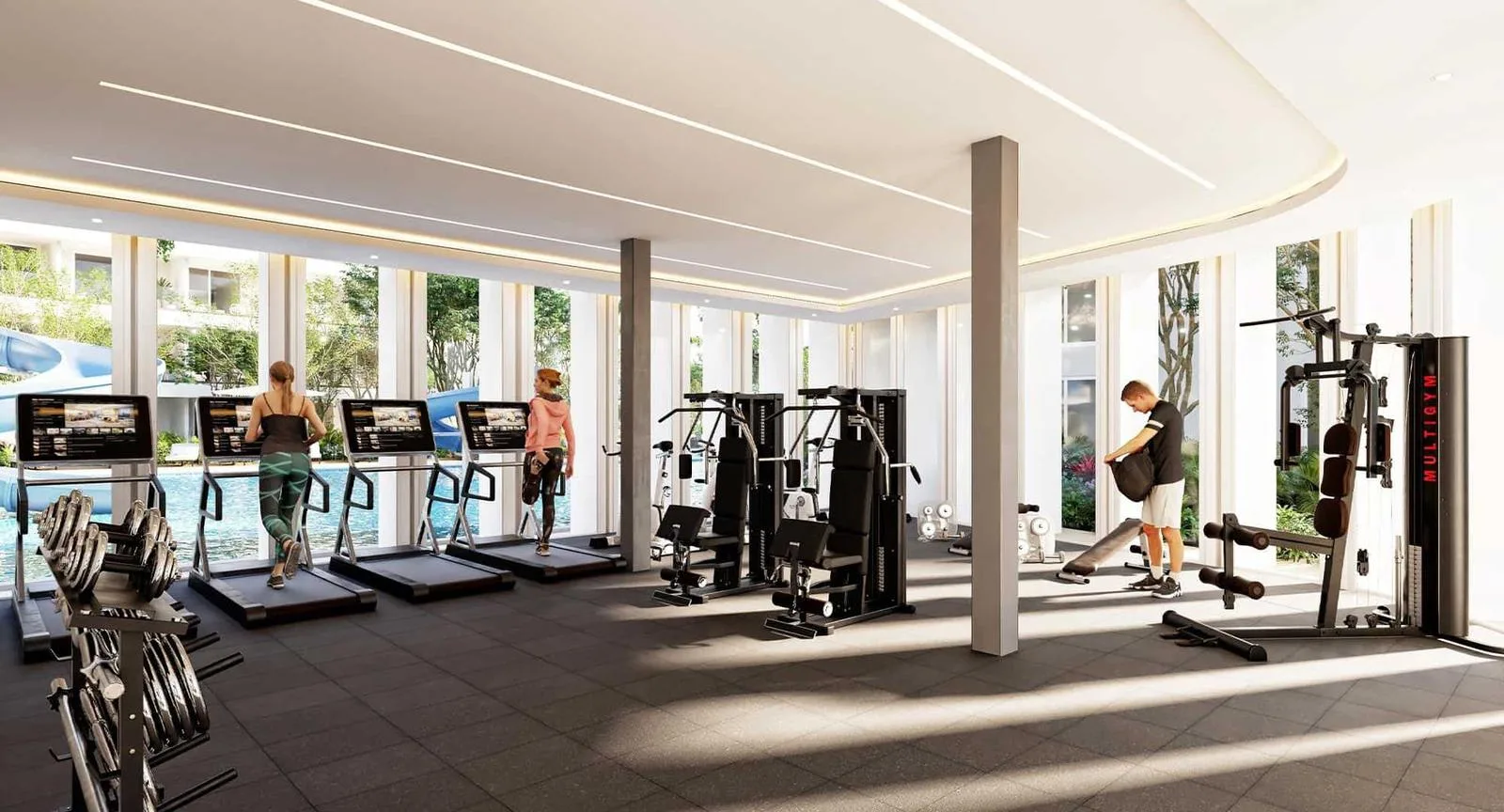 The residential building includes comprehensive amenities for residents. There is 24/7 security and controlled access to the property. Recreation facilities include an adult swimming pool, a children's pool, and a children's playground. A gym is also available for use.