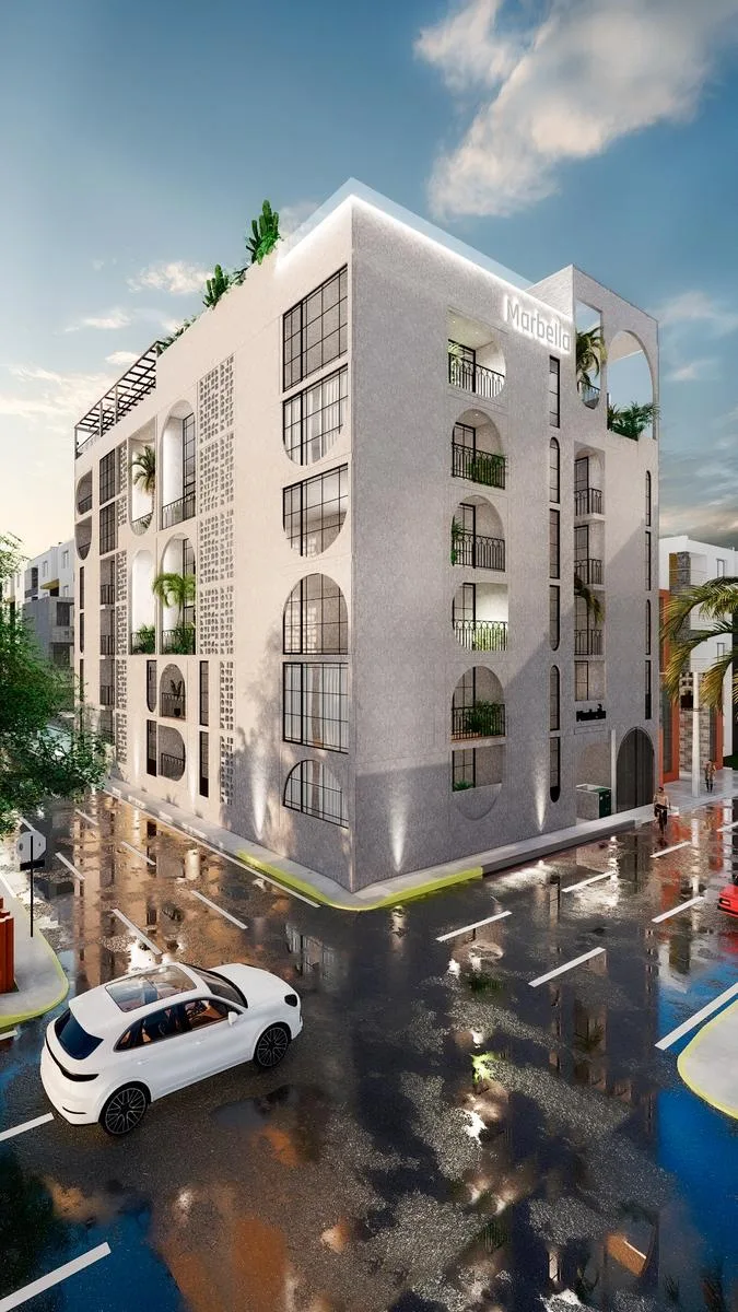 Building amenities feature a rooftop with a pool and sea view, an elevator, a gym, a yoga area, a grill area, a lookout point, and a Jacuzzi.