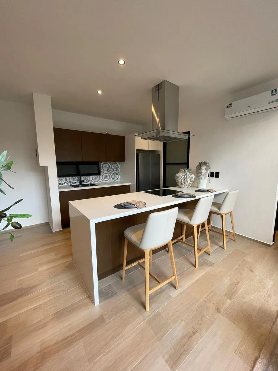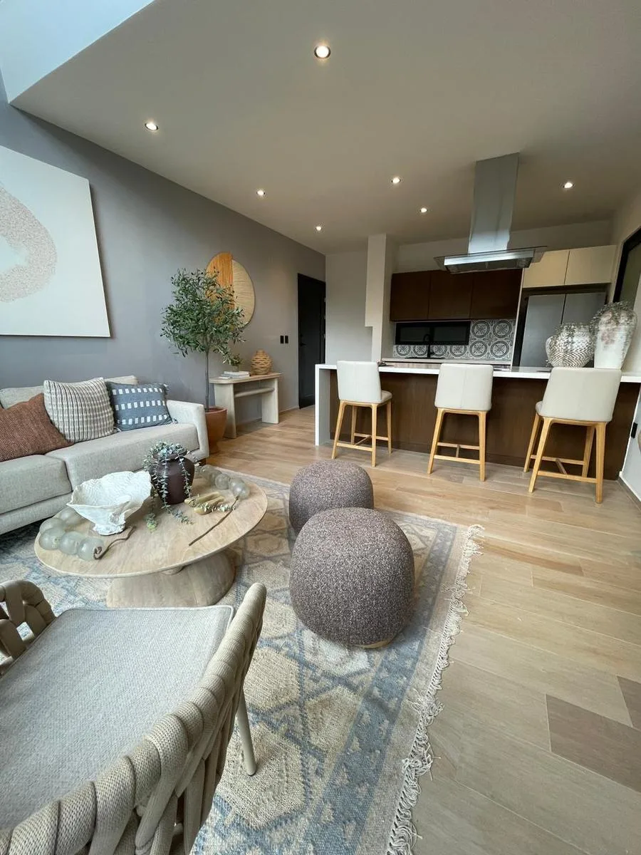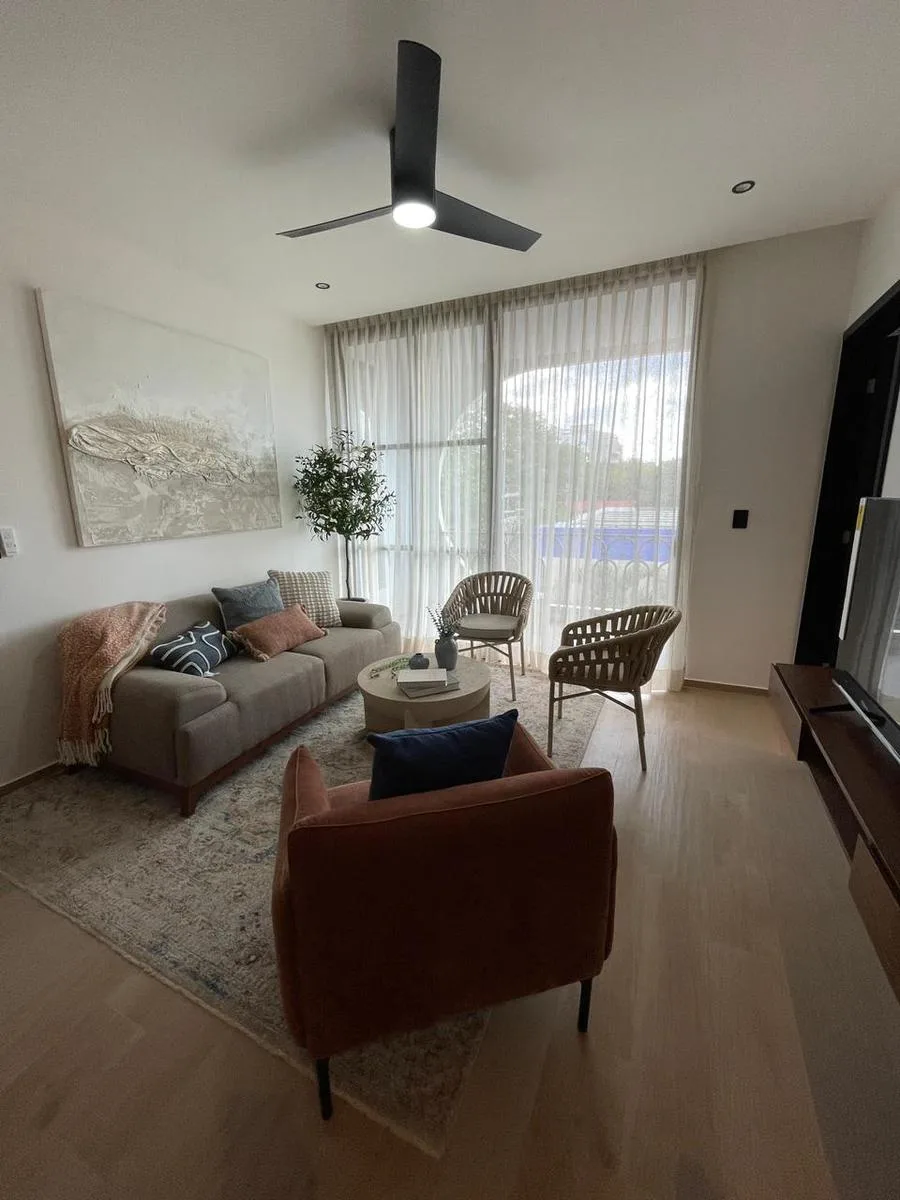 This one-bedroom apartment features a private terrace and encompasses a total area of 62 square meters. It is located in Playa del Carmen.