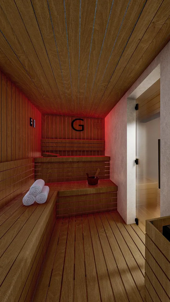 The environment is characterized by tranquility and nature, providing a modern setting ideal for relaxation.