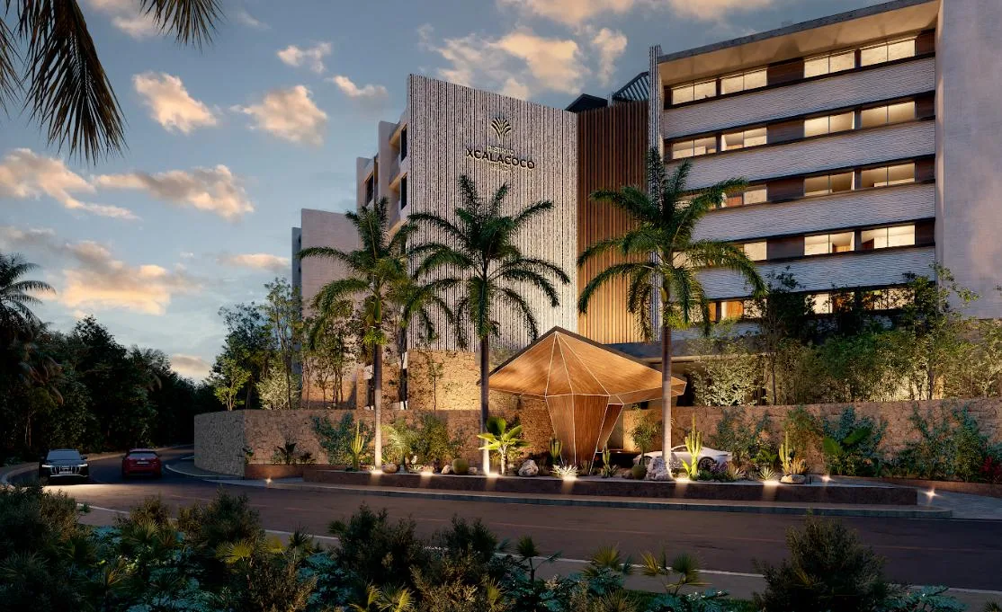 Distrito Xcalococo is a residential community situated in Playa del Carmen's Diamond Zone, just steps from the Caribbean shoreline. This development blends modern design with a coastal lifestyle.