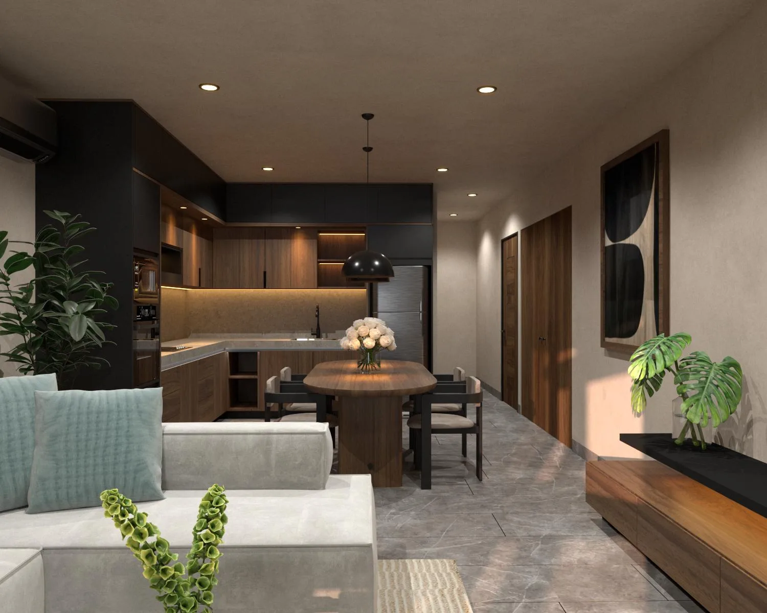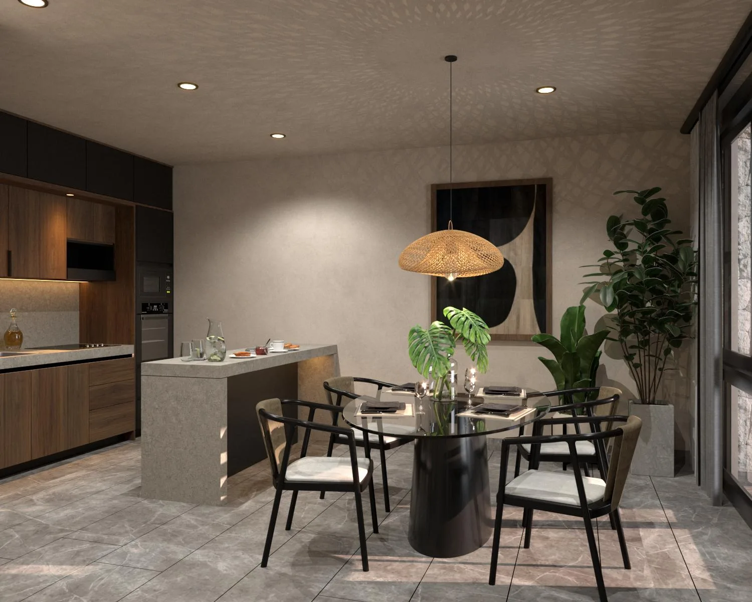 This residential development is located in the Playacar Phase II community in Playa del Carmen. It features contemporary architecture with natural materials and is set within tropical vegetation, near the Caribbean Sea.