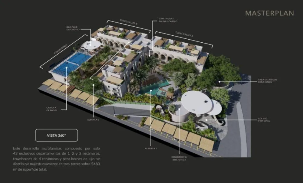 The development includes 45 residences, offering options with 1, 2, 3, and 4 bedrooms. Each residence has quality finishes, spacious layouts, private terraces, and a design that emphasizes natural light and connection with nature.