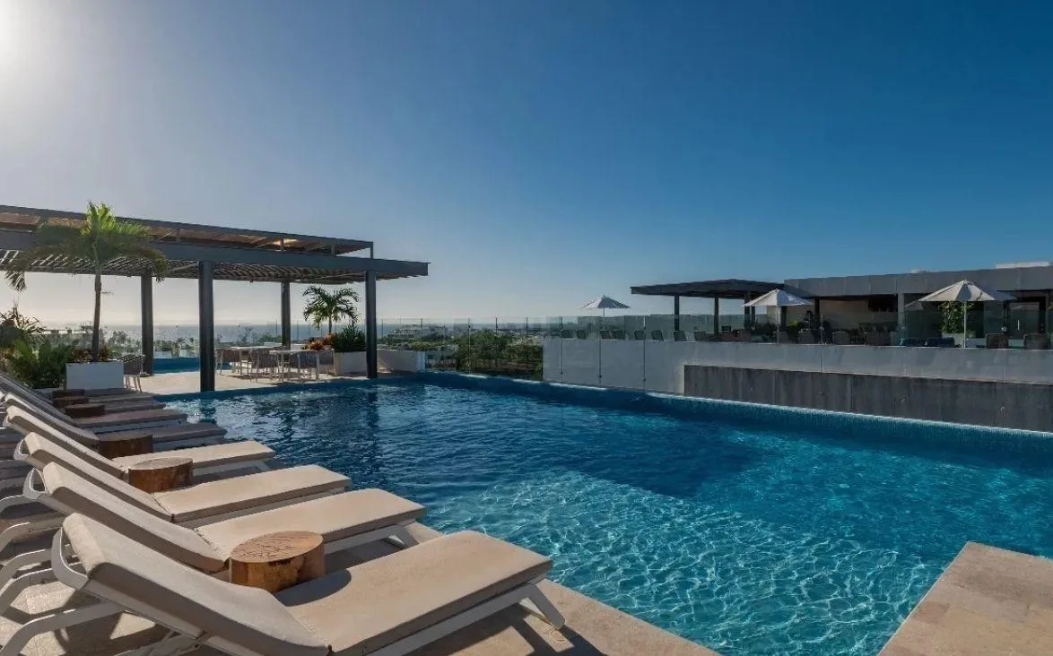 Six-Story Mixed-Use Building with Rooftop Pool, Sky Bar, and Gym