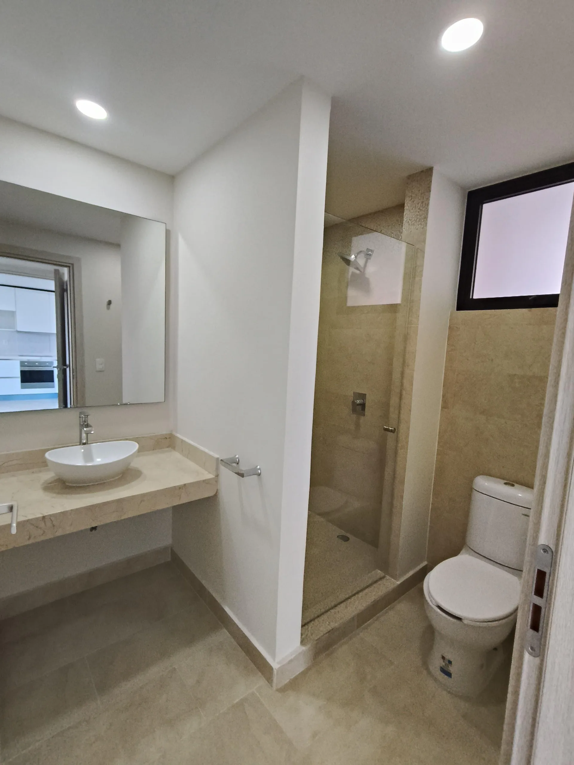 The unit is brand new and has never been occupied. It features a fully equipped kitchen, three full bathrooms, and a terrace with excellent natural light.