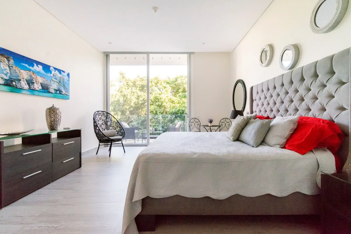The condo is situated within the Playacar residential community. It is a five-minute walk to the beach and nearby Mayan ruins, and a six-minute walk to Fifth Avenue, known for its boutiques, cafes, and restaurants. The location is also near the Cozumel ferry, snorkeling tours, boating, and jet skiing facilities.