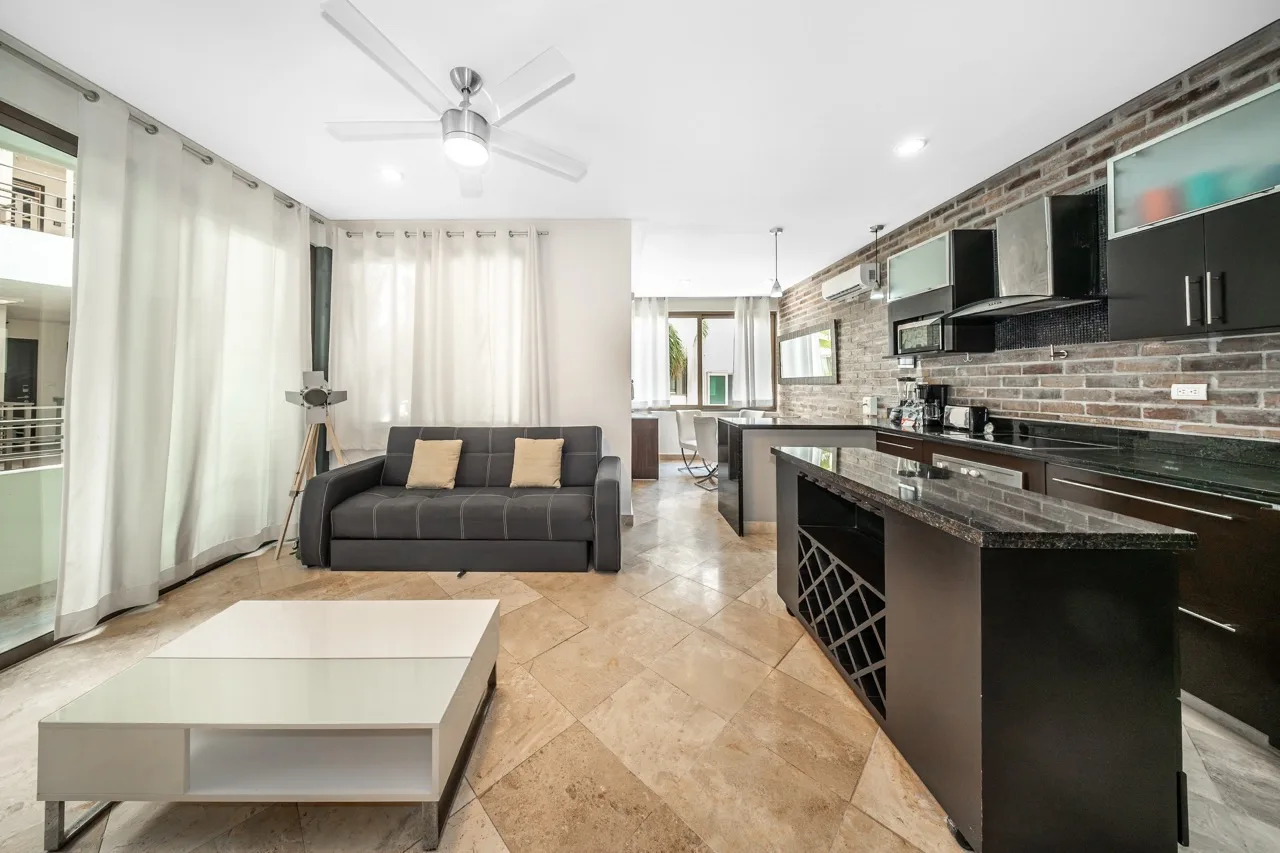 This spacious one-bedroom condominium is located in the heart of Playa del Carmen’s Zazil-Ha neighborhood, a short walk from the beach and Quinta Avenida. It offers 67 square meters of well-distributed interior space.