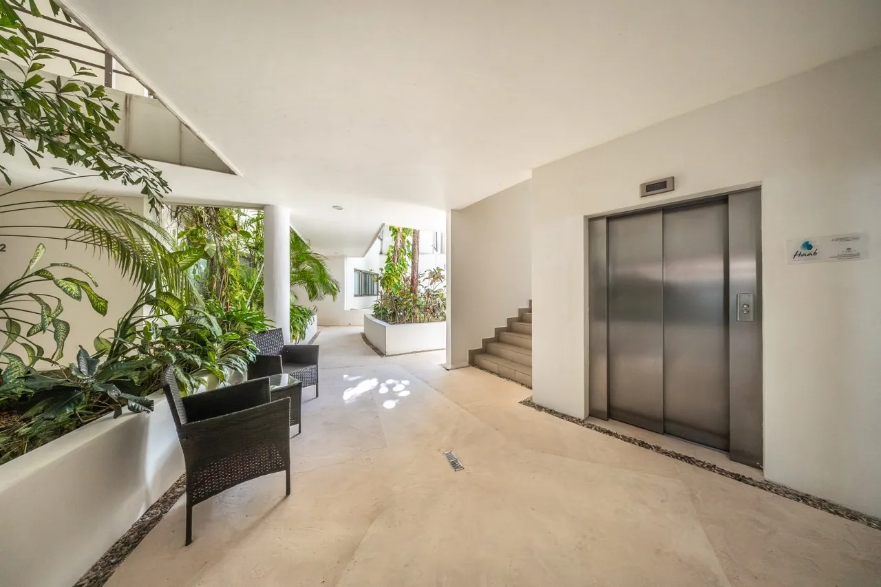 The building includes 24/7 security, underground parking, and a shared swimming pool. The central yet quiet location in Zazil-Ha places it within walking distance to beaches, shopping, restaurants, and local services.