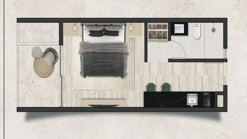 Unit sizes start from 366 square feet for studios and from 473 square feet for one-bedroom condominiums. All units incorporate modern finishes and integrated social areas.