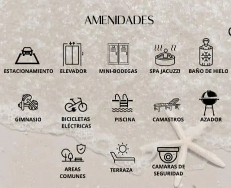 The building offers a comprehensive suite of amenities. These include an elevator, mini storage units, a spa with a jacuzzi and an ice bath, a gym, access to electric bicycles, a rooftop pool with sun loungers, barbecue areas, common areas, a terrace, and security cameras.