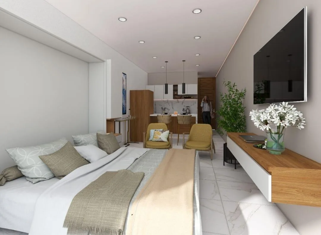 This fully equipped studio is located in the center of Playa del Carmen and includes a parking space.