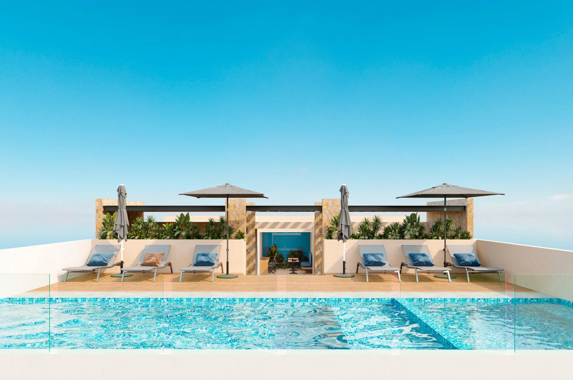 This 38. 8 square meter (418 sq ft) studio is a smartly designed space that maximizes comfort and functionality. It features a queen-size bed area, an equipped kitchen, a full bathroom, and a private terrace, ideal for enjoying the Caribbean climate. The finishes are high-quality and include integrated Smart House technology, offering a modern lifestyle.