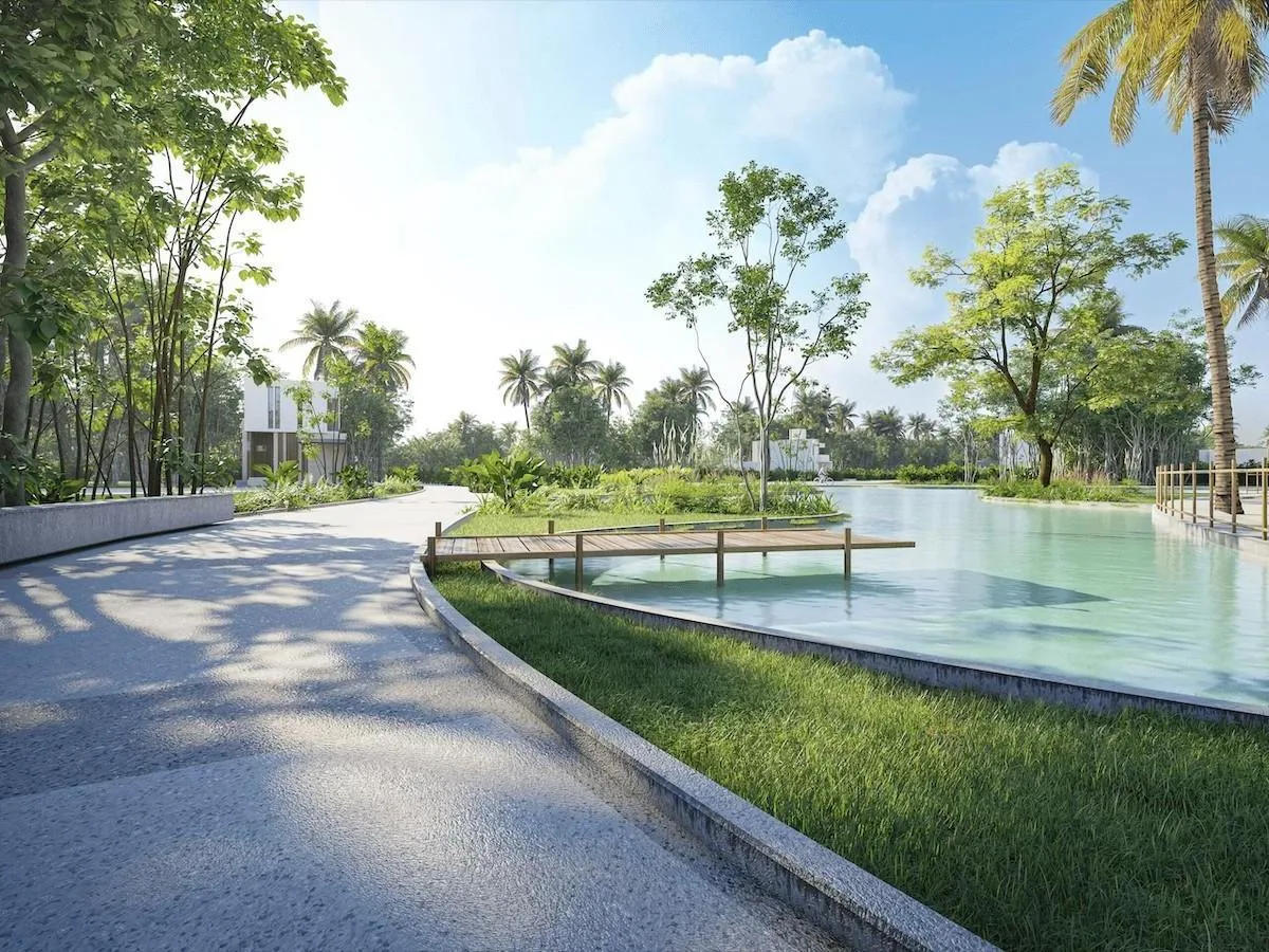Within the building, residents have access to a swimming pool, sun decks, parking, a lobby, and an elevator. The property is situated in a serene natural environment within the Mexican Caribbean region.