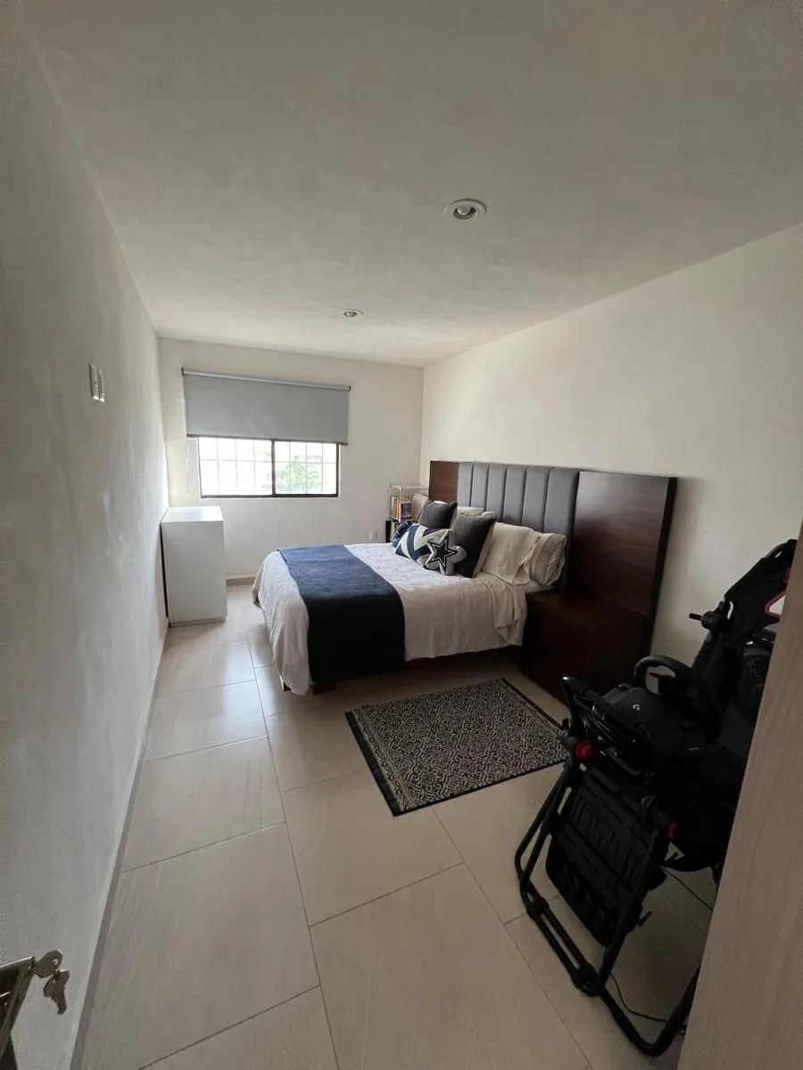 The residence features three bedrooms and 2. 5 bathrooms. The master bedroom includes a walk-in closet. There is a spacious pantry and a covered parking space for two cars, with the capacity to accommodate up to five vehicles.