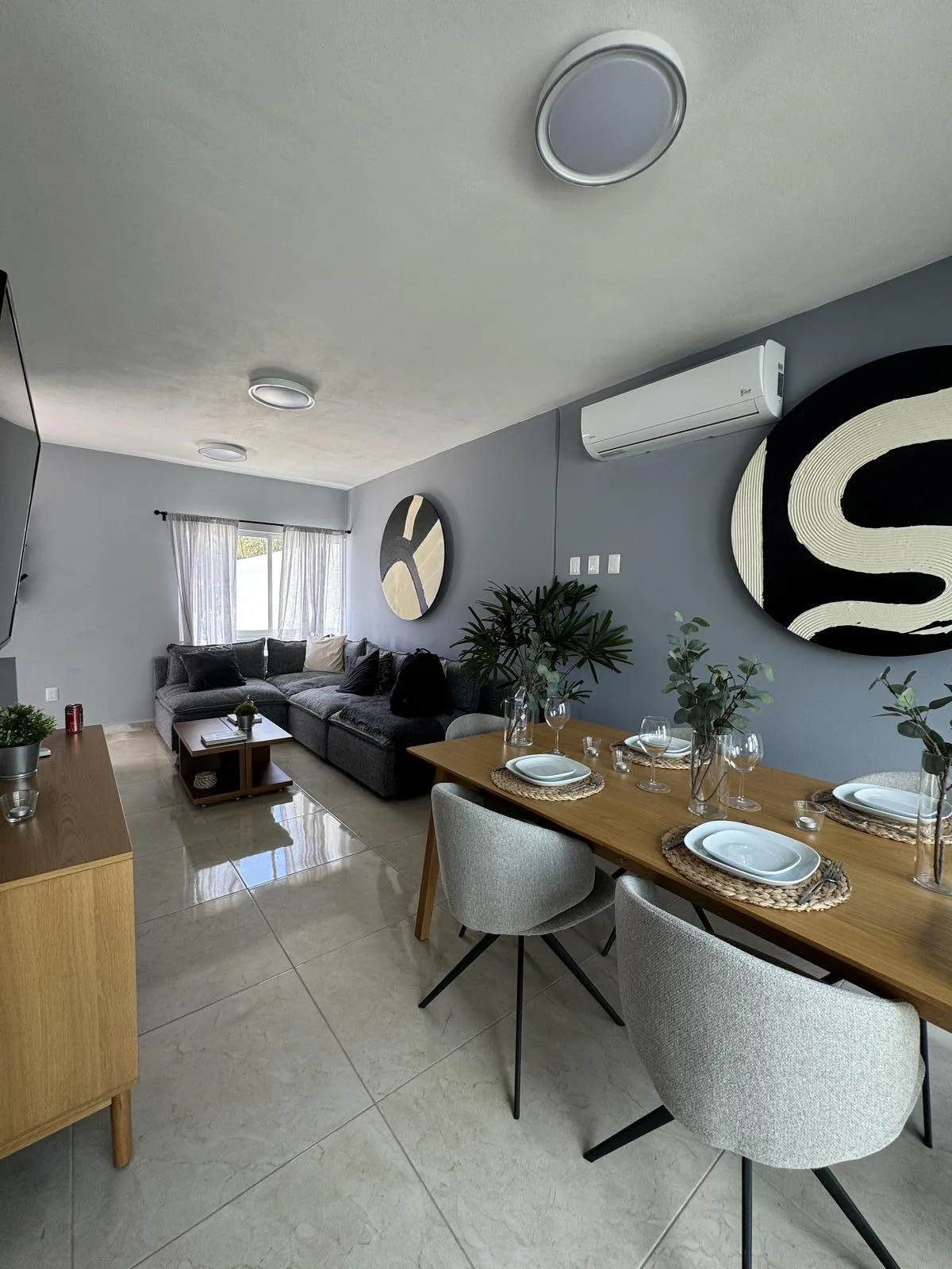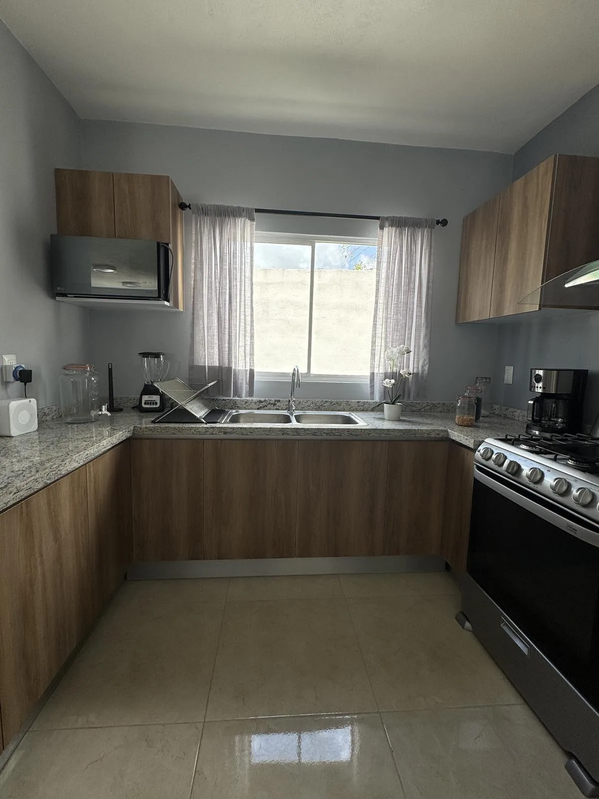 This property for sale is a three-bedroom home located in Playa del Carmen. The home includes a functional layout with well-utilized spaces and benefits from excellent natural lighting. It is part of a community featuring a family-friendly environment.