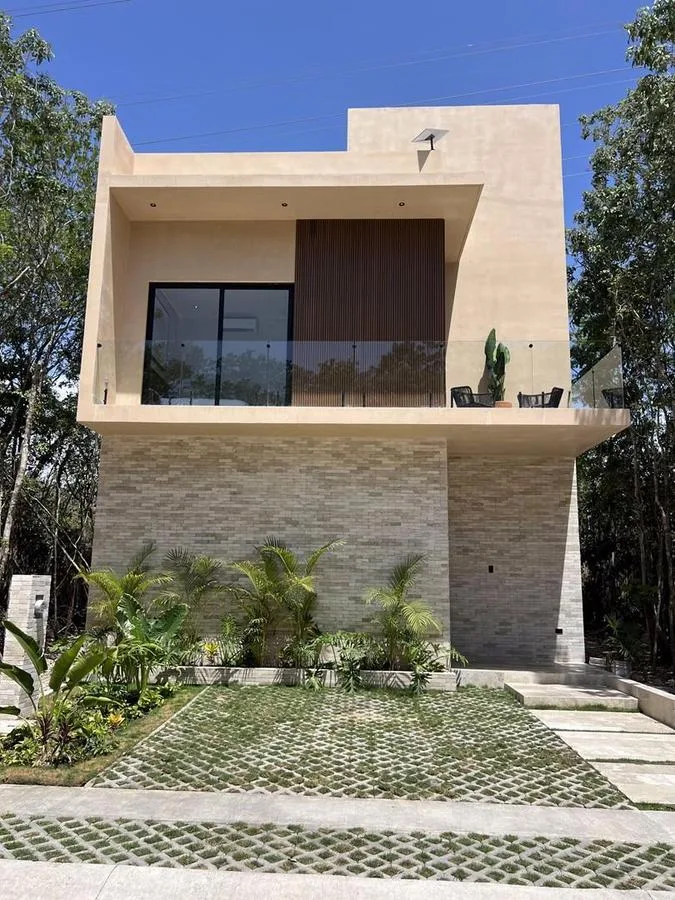 This 3-bedroom house is situated within a residential complex in Playa del Carmen, featuring modern urban infrastructure and a planned community environment.