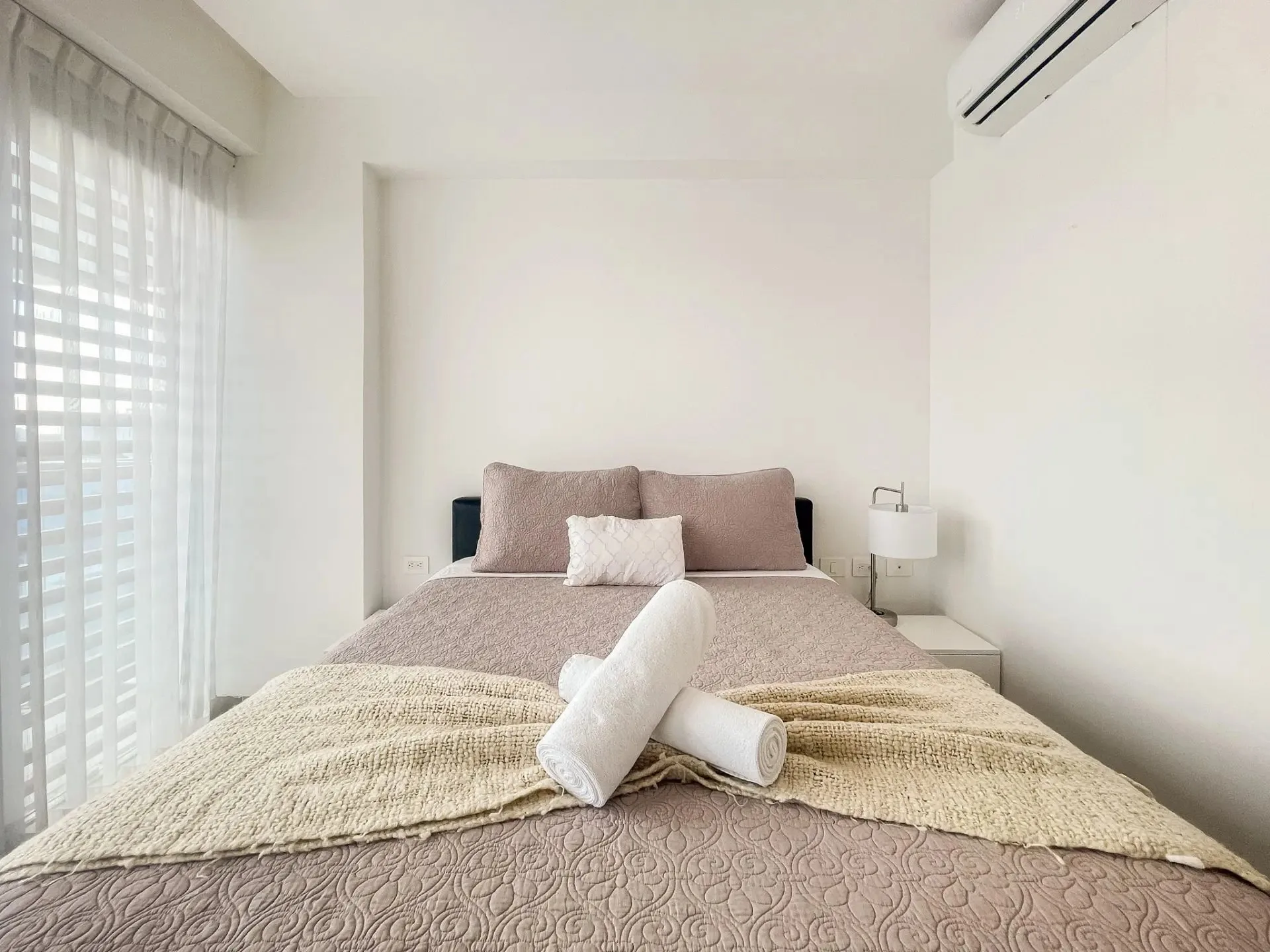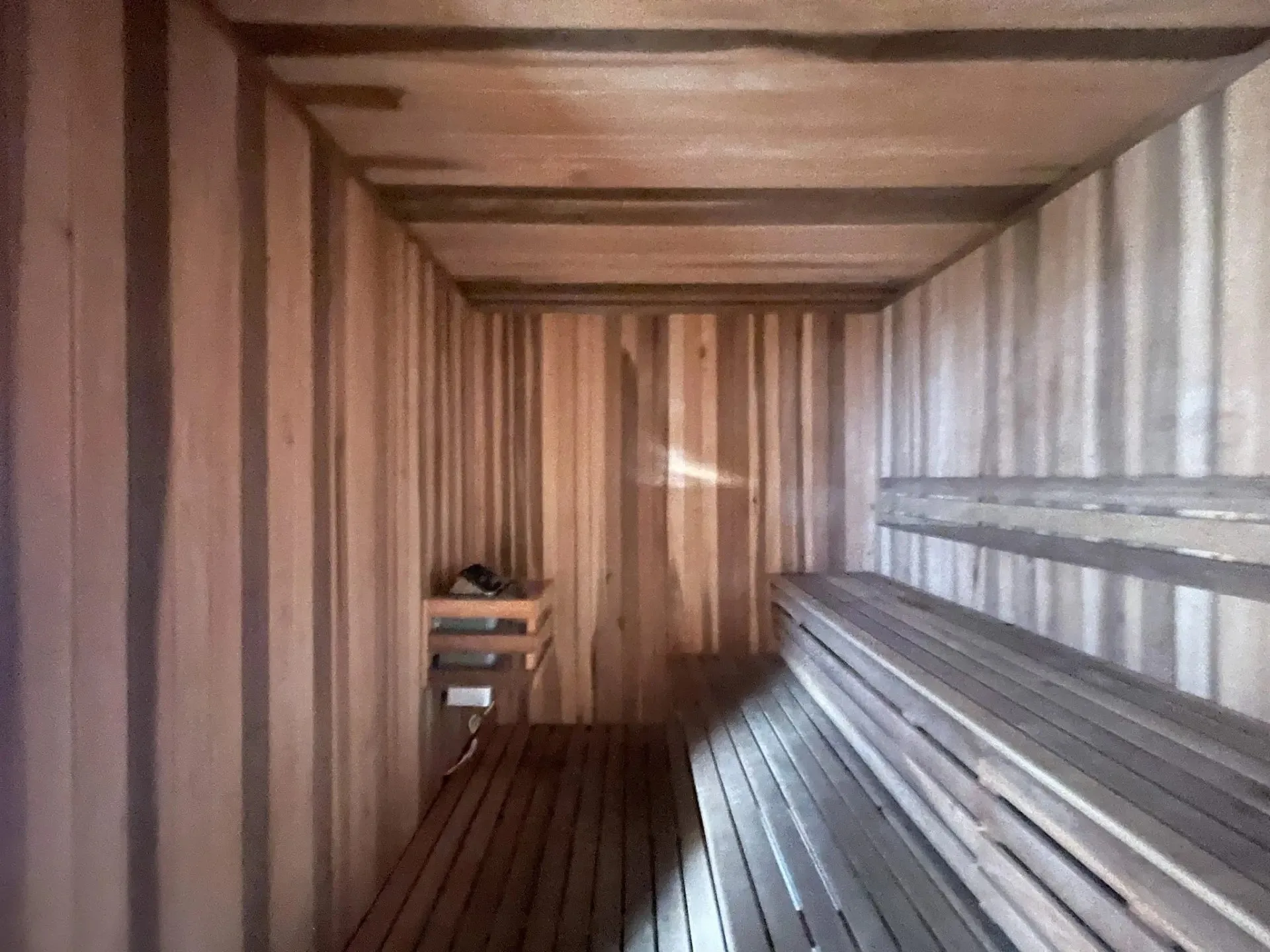Building amenities include a garden with an outdoor pool, a fitness room, a relaxing sauna, a terrace, and barbecue facilities. Additional features comprise a second pool, a jacuzzi, a sun bed area, a lounge area, a bar, underground parking, and 24-hour security.