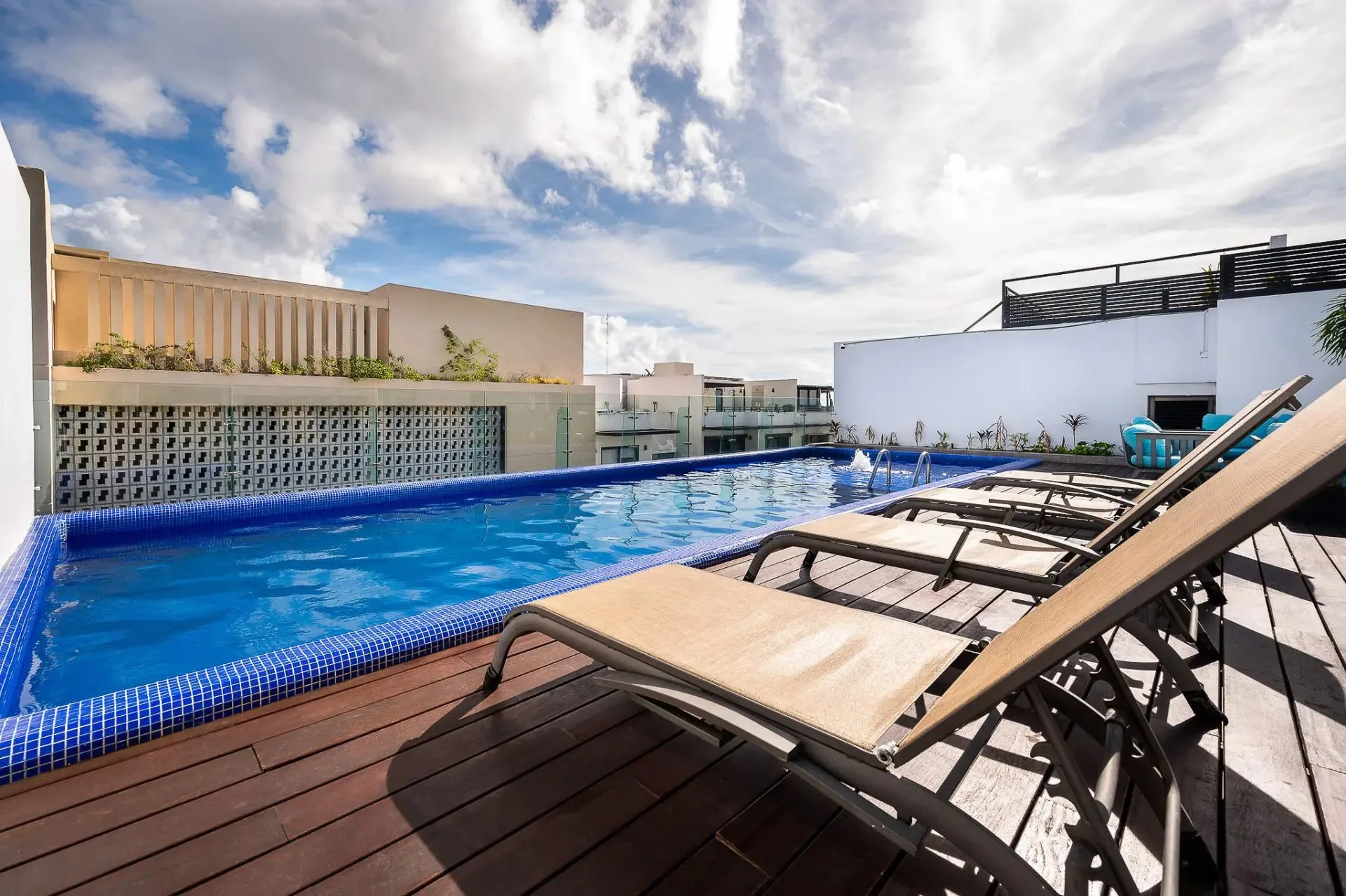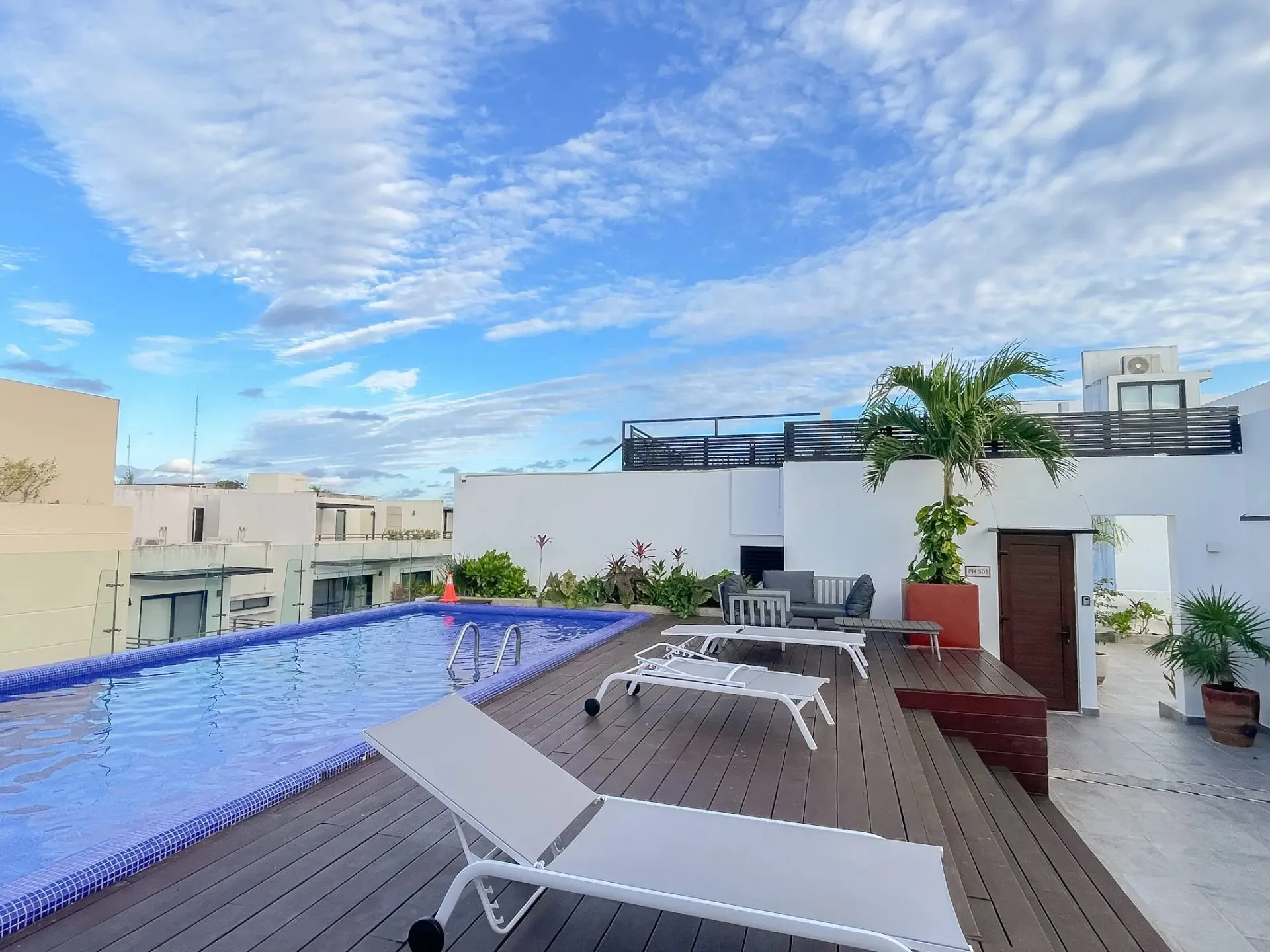The residence is situated just a 7-minute walk from Playa del Carmen Beach and approximately 1 km from Playacar Beach. The ADO International Bus Station is an 8-minute walk away, and the Maritime Terminal is 1 km from the property. The area provides access to local boutiques, nightlife, and restaurants.