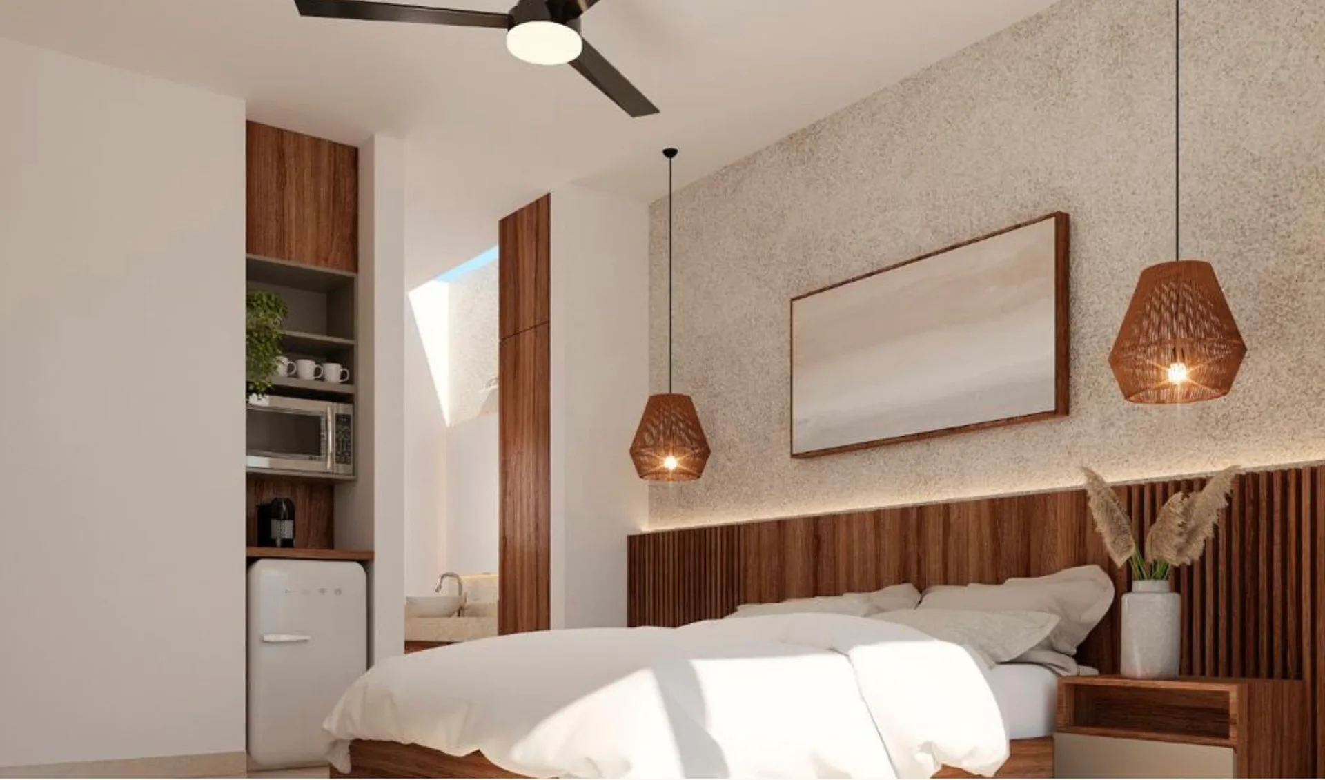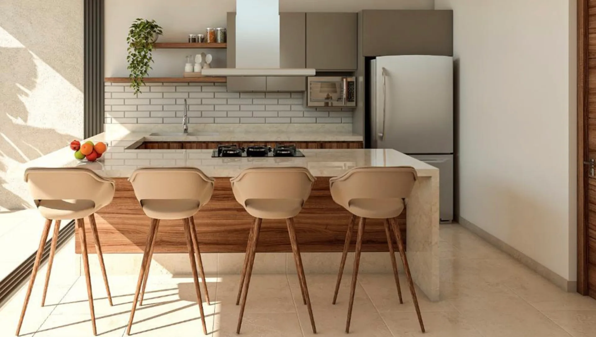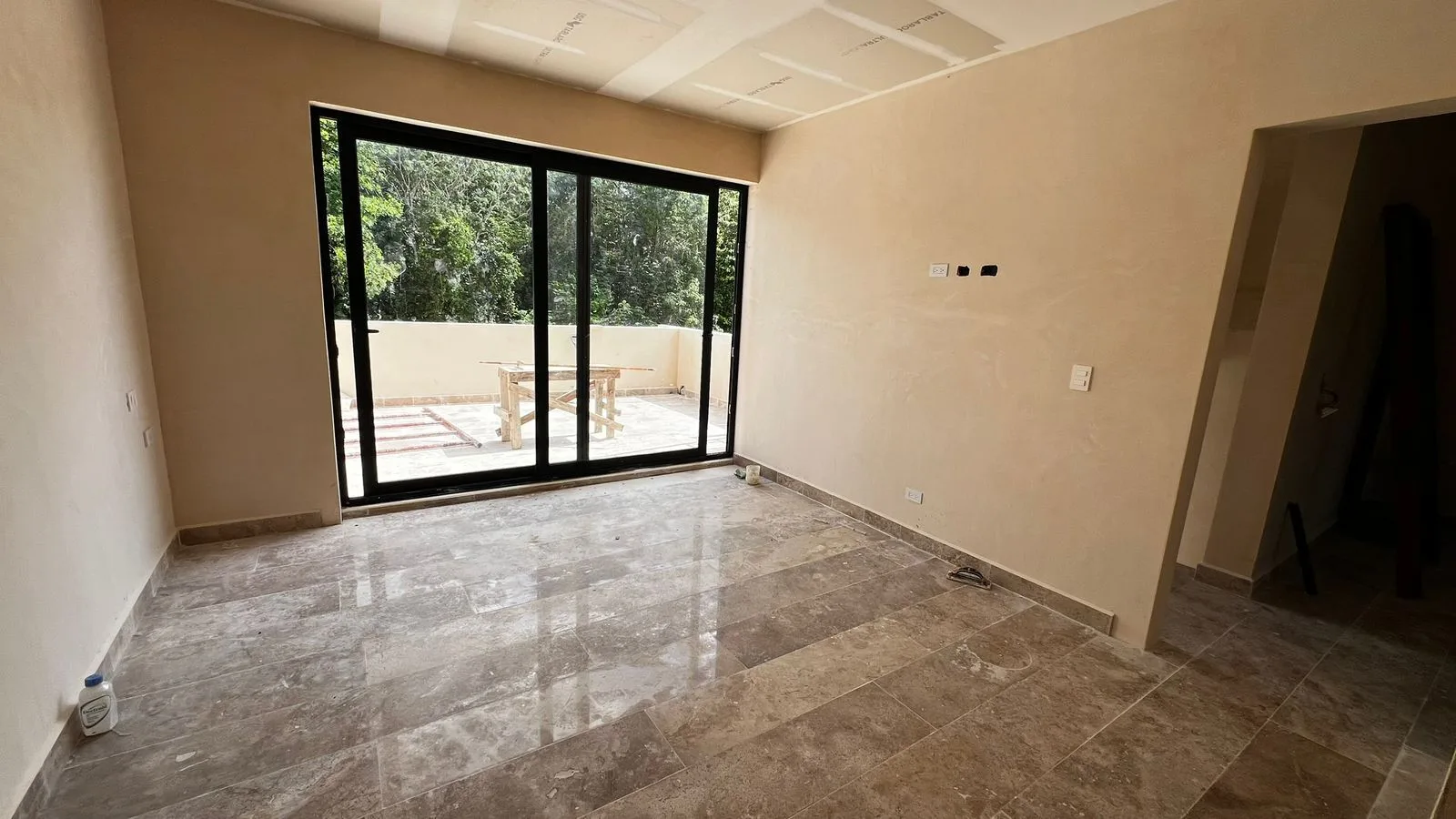 Premium finishes include marble-type porcelain tile, Parota and Tzalam wood, granite kitchen countertops, and marble bathroom vanities. The rooftop is constructed with concrete.