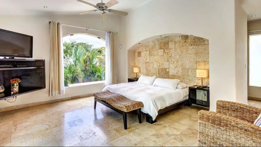 The house has five bedrooms and five bathrooms with views of the lagoon and golf course. It is adjacent to the RIU Lupita Hotel. The property is set on a 1, 409 square meter lot and features a nearly 100 square meter swimming pool surrounded by a terrace with a solarium.